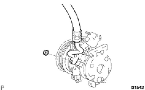 (d) Install the cooler refrigerant suction hose No.1 to the compressor and magnetic clutch with the nut.