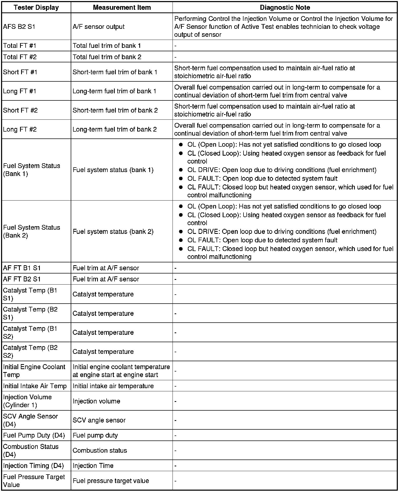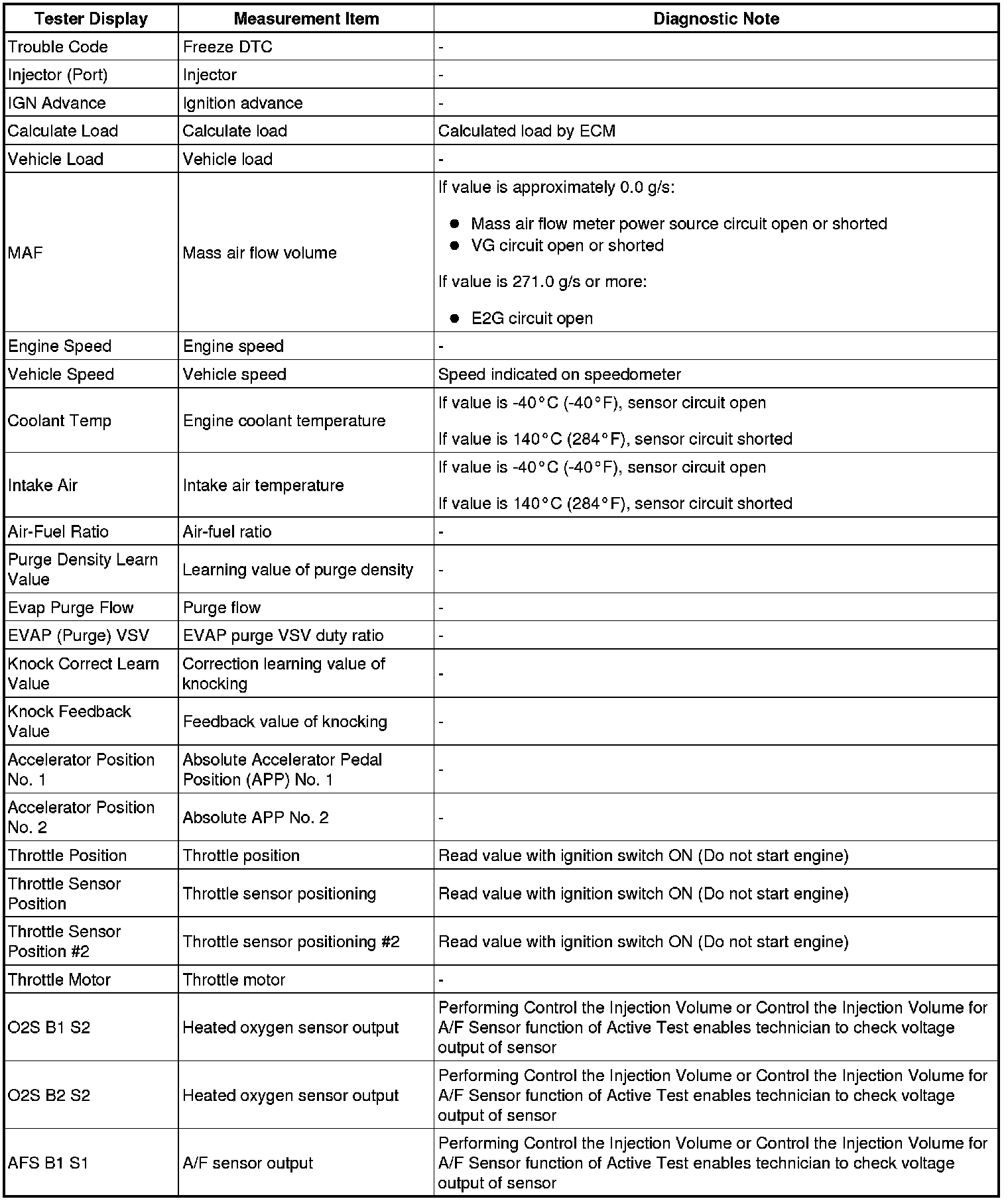 (a) The ECM records vehicle and driving condition information as freeze frame data the moment a DTC is stored. When troubleshooting, freeze frame data can be helpful in determining whether the vehicle was running or stopped, whether the engine was warmed up or not, whether the air-fuel ratio was lean or rich, as well as other data recorded at the time of a malfunction.