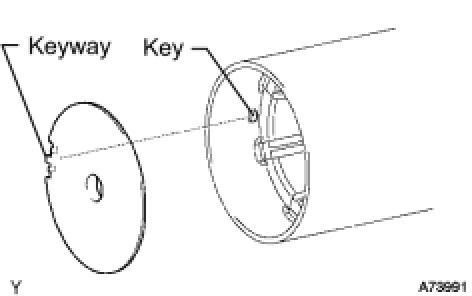 (b) Align the keyway of the starter plate with the key inside the starter field frame, and install the starter plate.