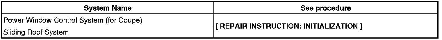NOTE: When disconnecting the cable from the negative (-) battery terminal, initialize the following system(s) after the cable is reconnected.