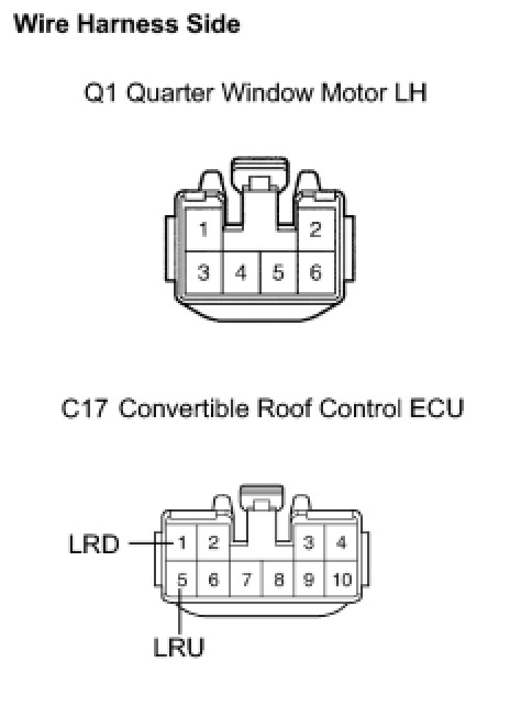 (a) Check the wire harness between the quarter window motor LH and convertible roof control ECU.