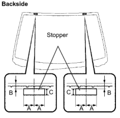 (b) Install 2 new stoppers onto the windshield glass as shown in the illustration.