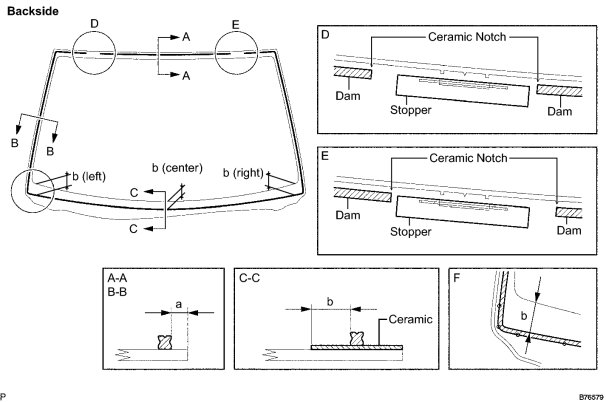 (b) Apply double-sided tape along the outer edge of the entire windshield glass except for the area marked D and E in the illustration.