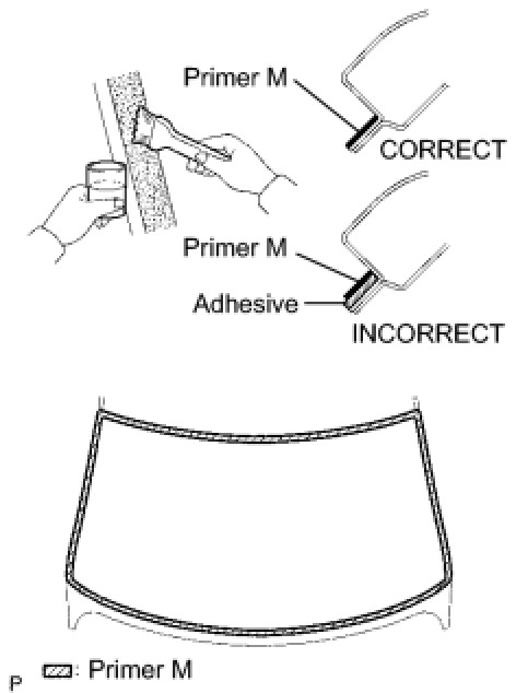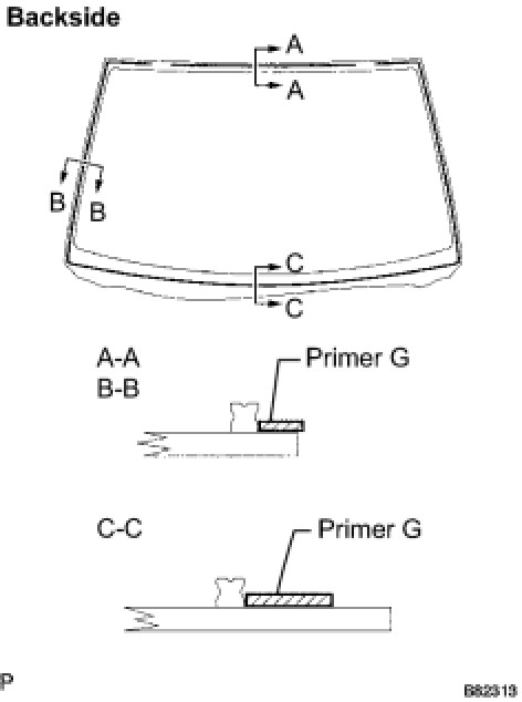 (c) Using a brush or sponge, apply Primer G to the contact surface of the windshield glass.