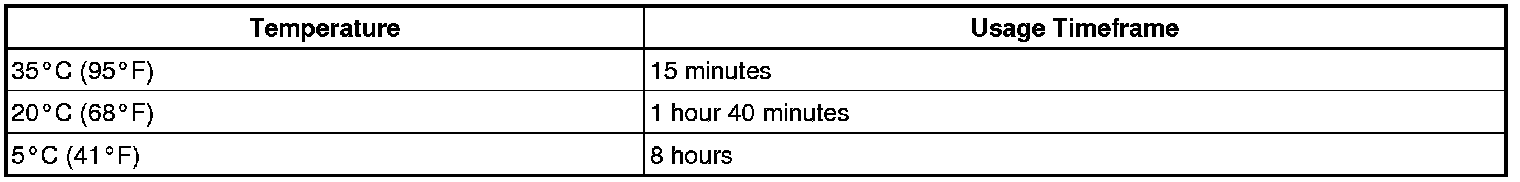 HINT: After cutting off the tip, use all adhesive within the time written in the table below.