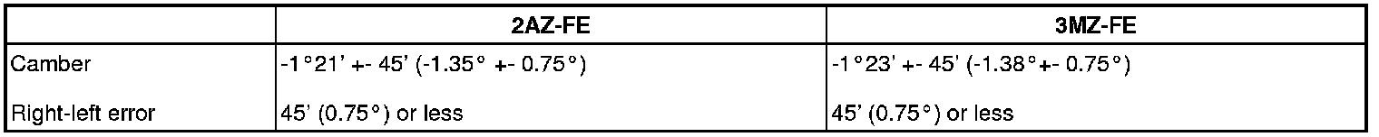 HINT: Camber is not adjustable. If the measurement is not within the specification, inspect the suspension parts for damage and/or wear, and replace them if necessary.