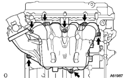 (a) Remove the 5 bolts, 2 nuts, intake manifold and gasket.