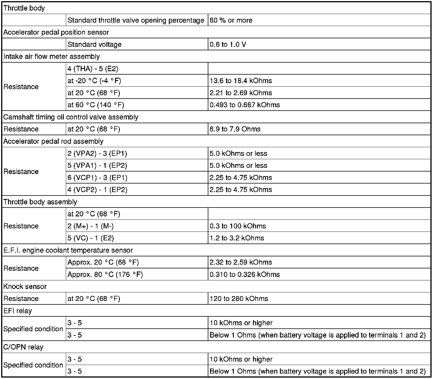 SERVICE SPECIFICATIONS: 2AZ-FE ENGINE CONTROL SYSTEM: