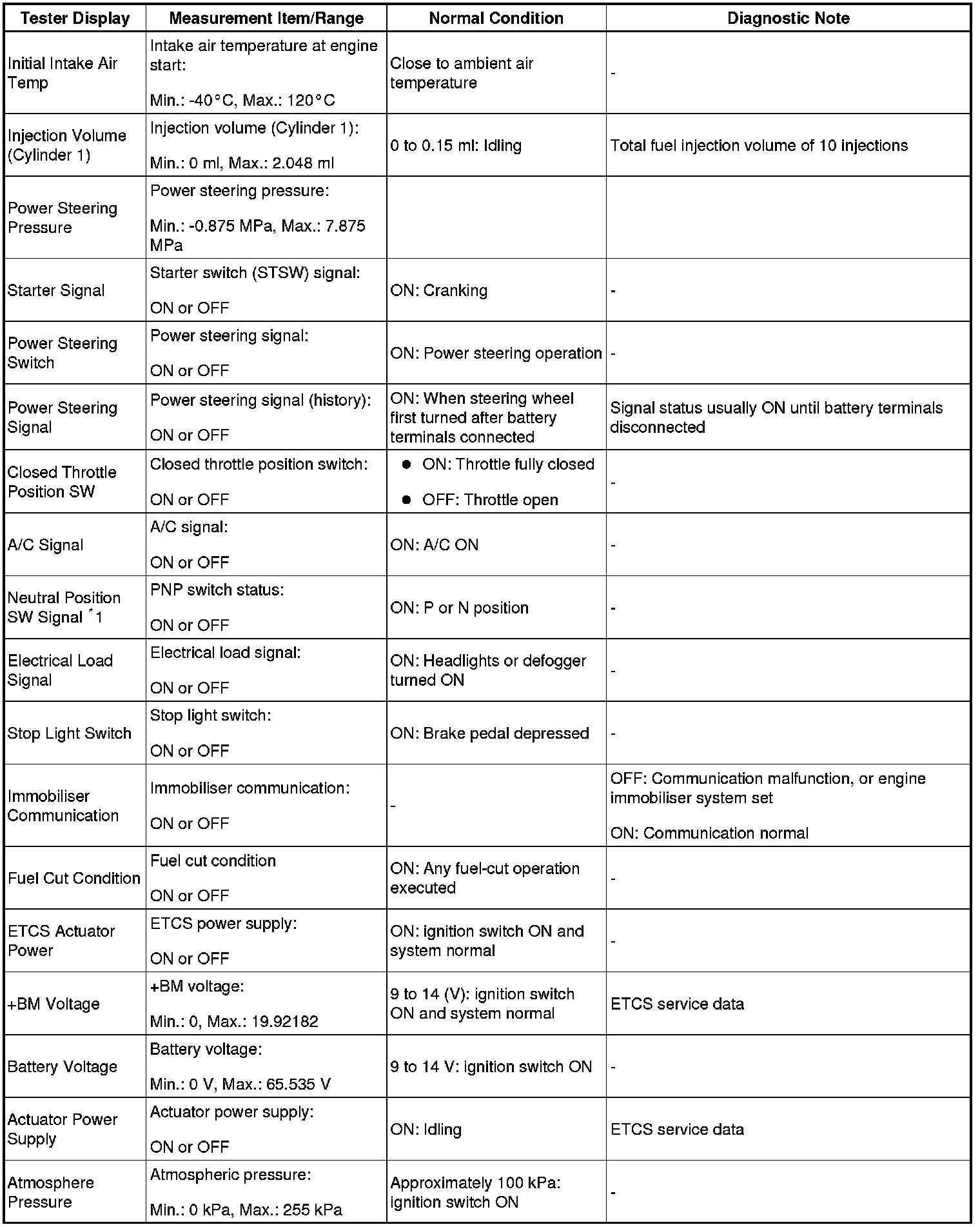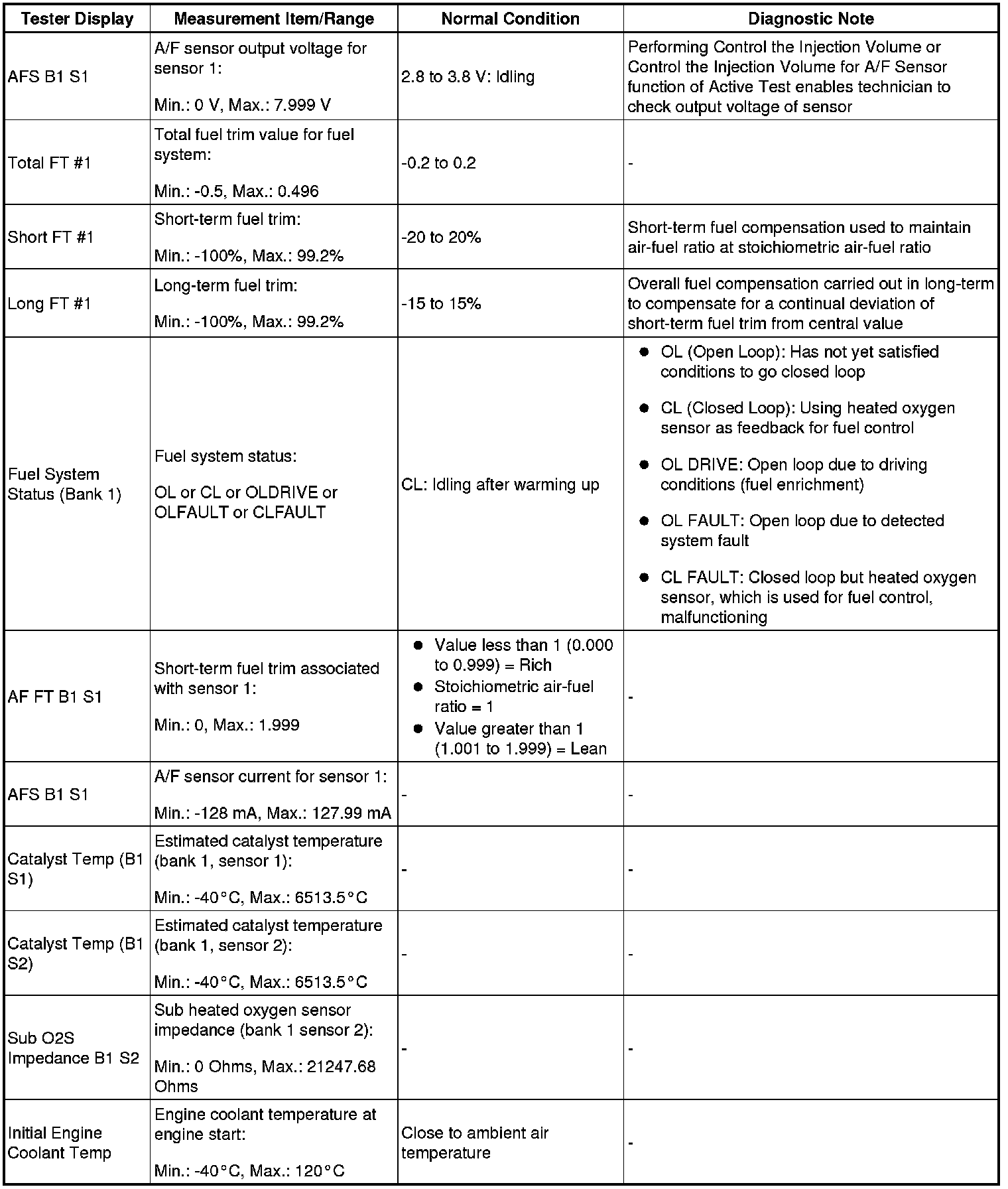 HINT: By reading the DATA LIST displayed on Techstream, values can be checked, including those of the switches, sensors, and actuators, without removing any parts. Reading the Data List as the first step in troubleshooting is one method to shorten diagnostic time.