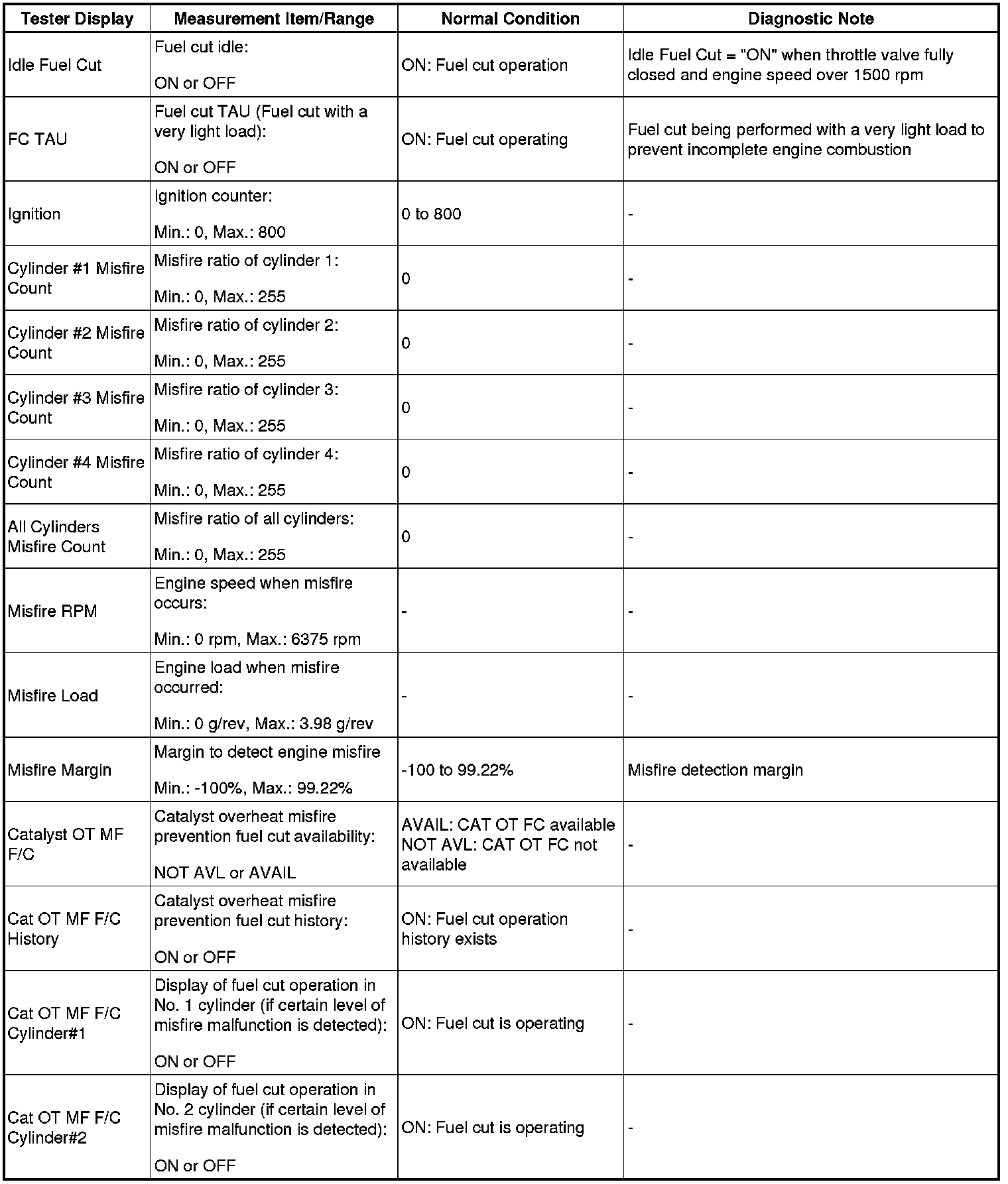 NOTE: *3: If the display of the Data List's Catalyst OT MF F/C item is Not Avl, perform this Active Test with the vehicle stopped and the engine idling. If the display of the Data List's Catalyst OT MF F/C item is Avail, perform this Active Test as described below.