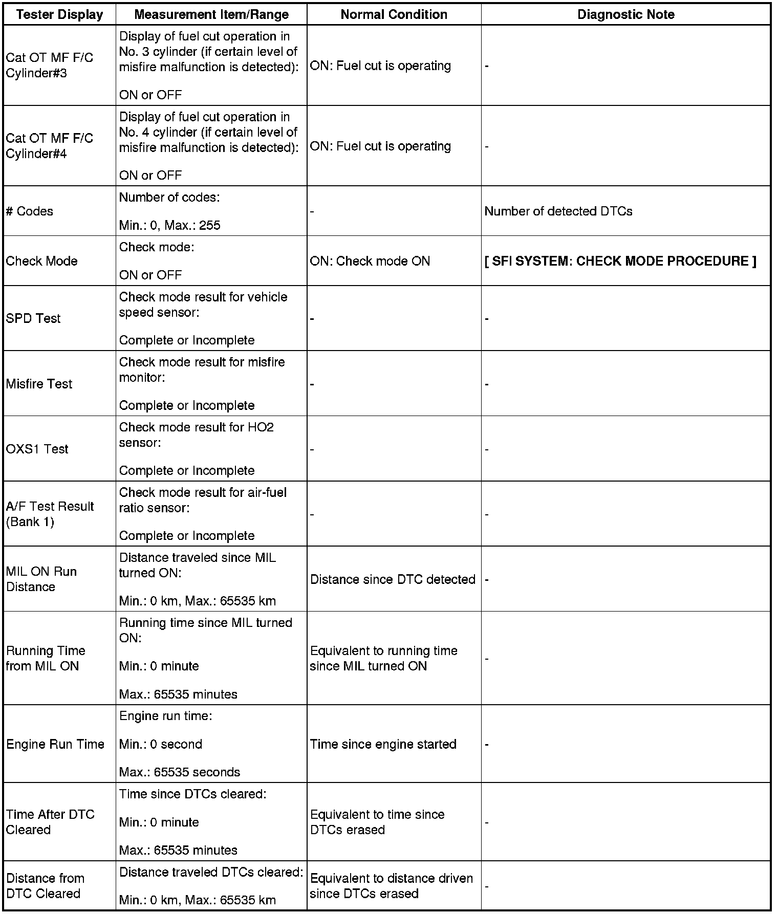 (e) Perform the System Check by referring to the table below.