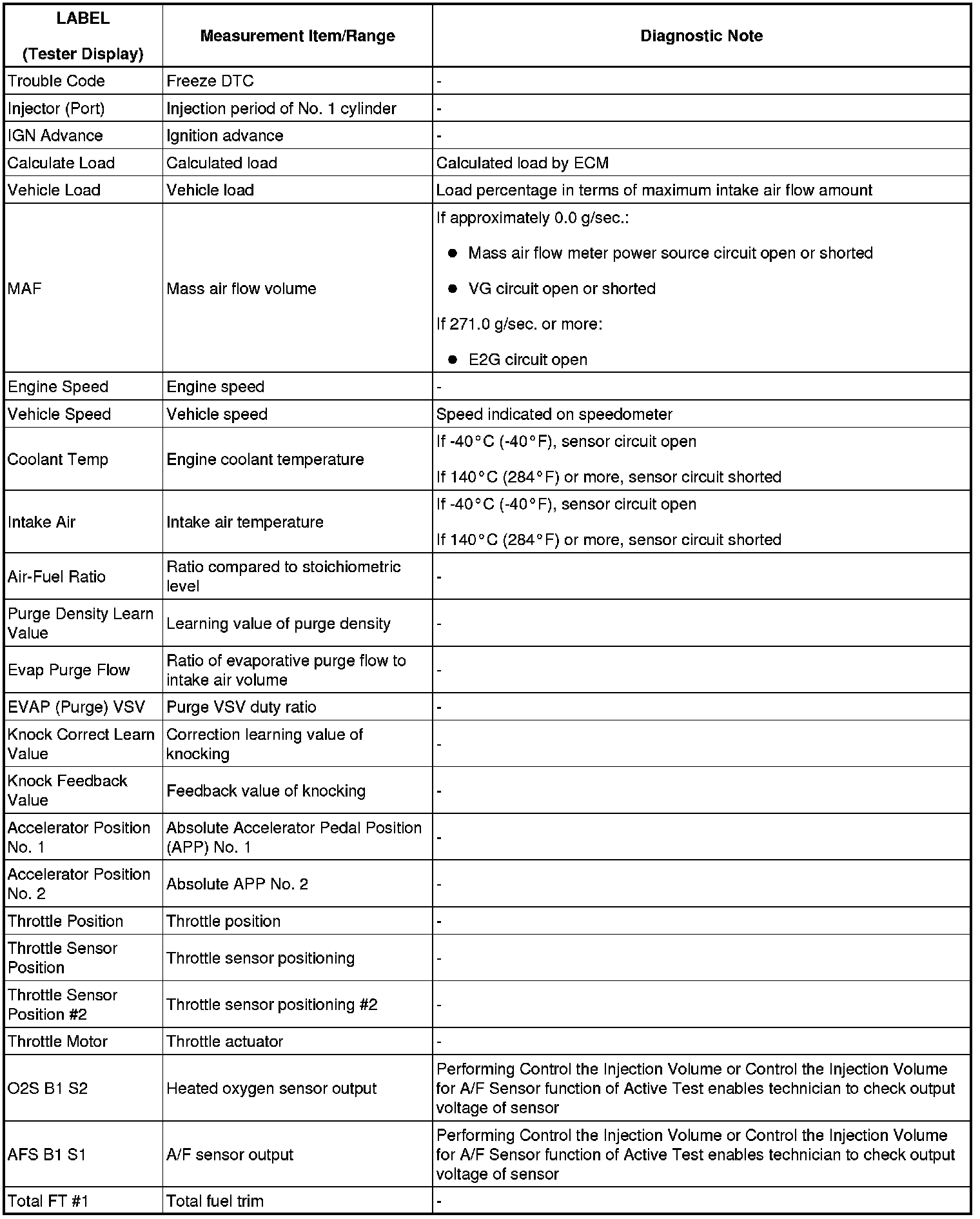 - The ECM records engine conditions in the form of freeze frame data every 0.5 seconds. Using Techstream, 5 separate sets of freeze frame data can be checked.