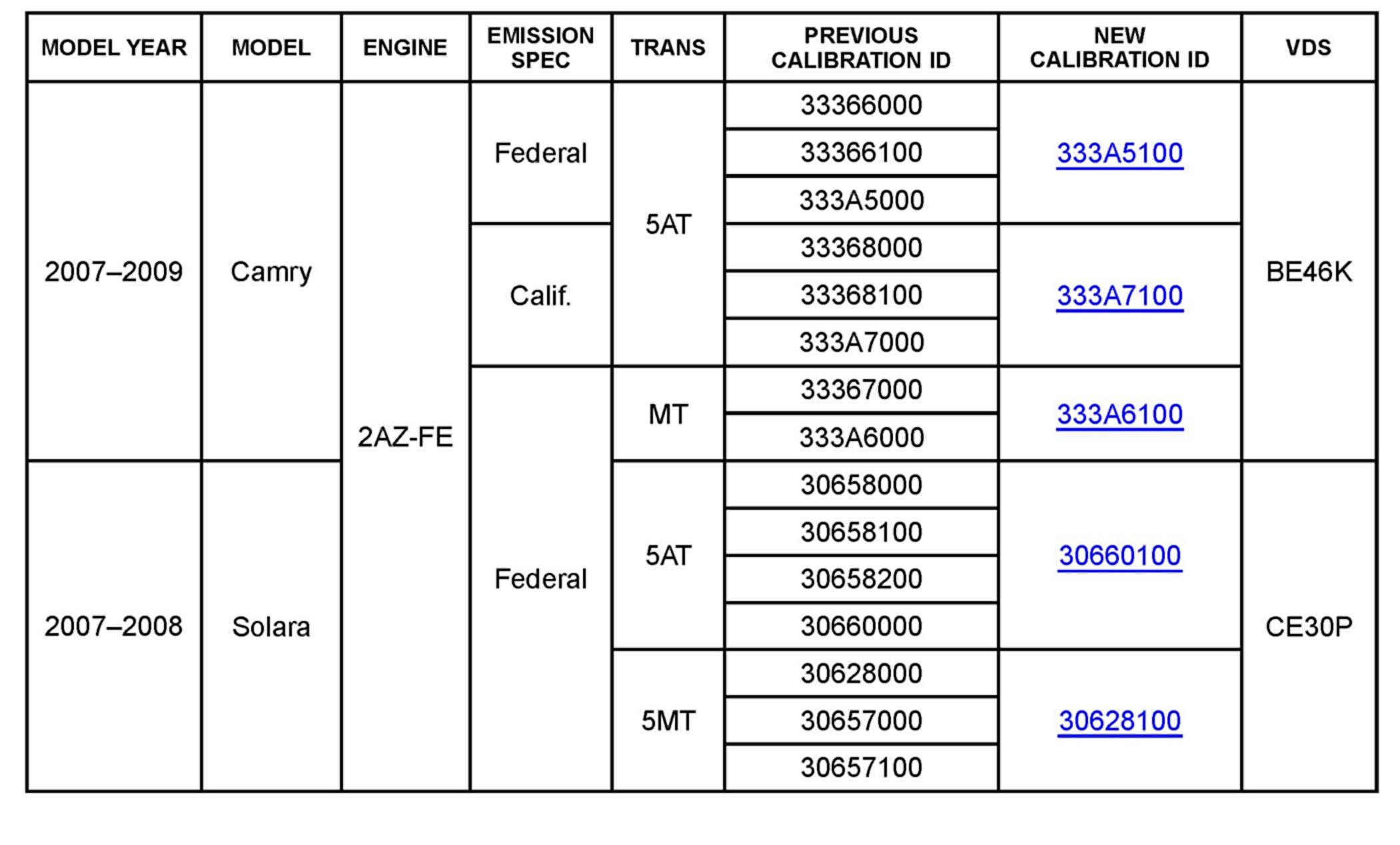 ^ Applicability has been updated to include 2007 - 2008 model year Solara and 2008 - 2009 model year Camry.