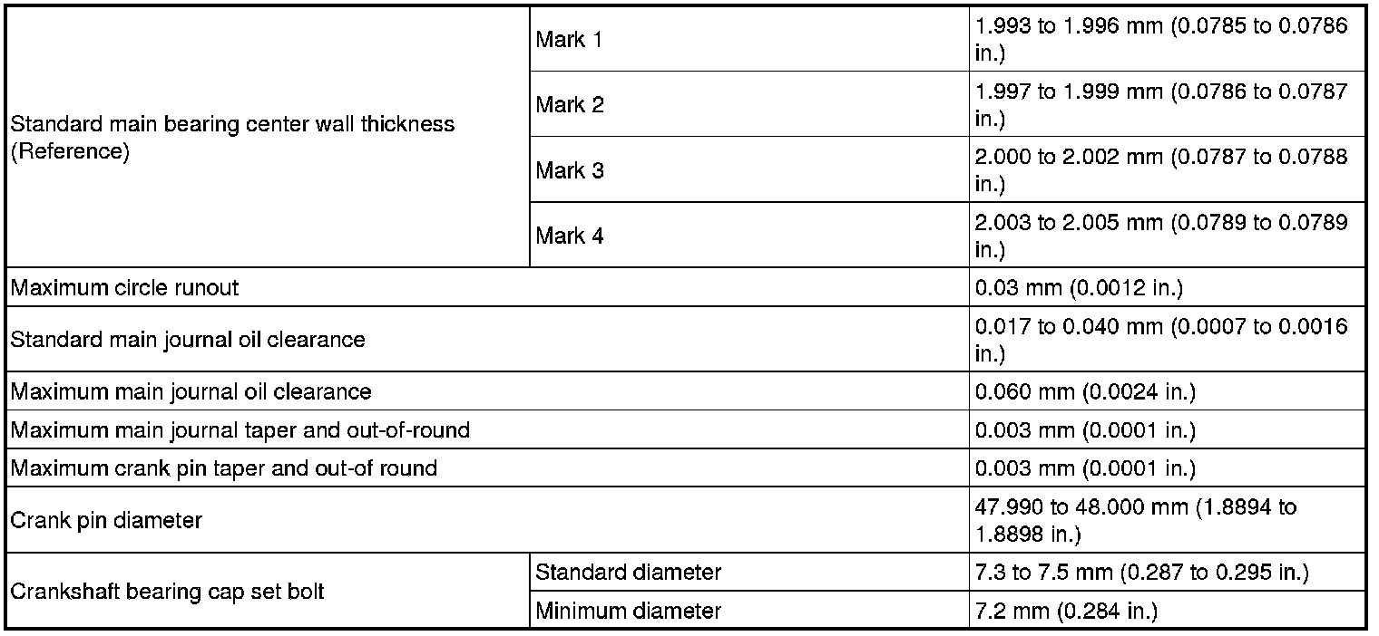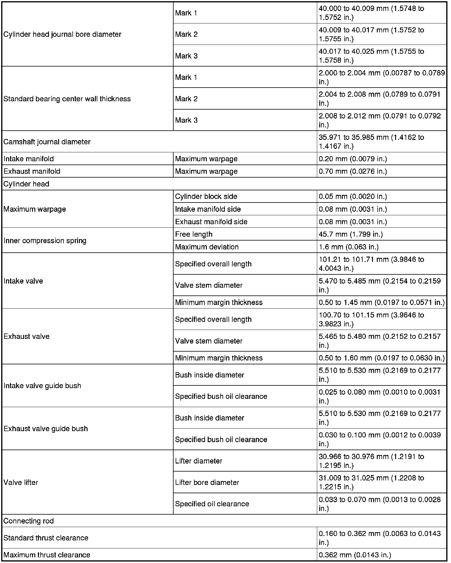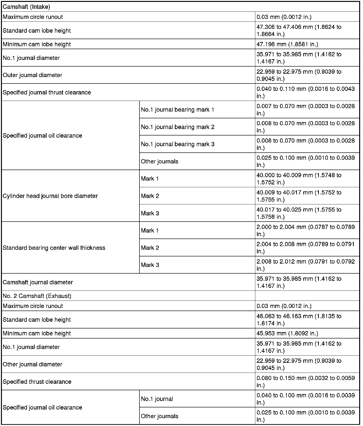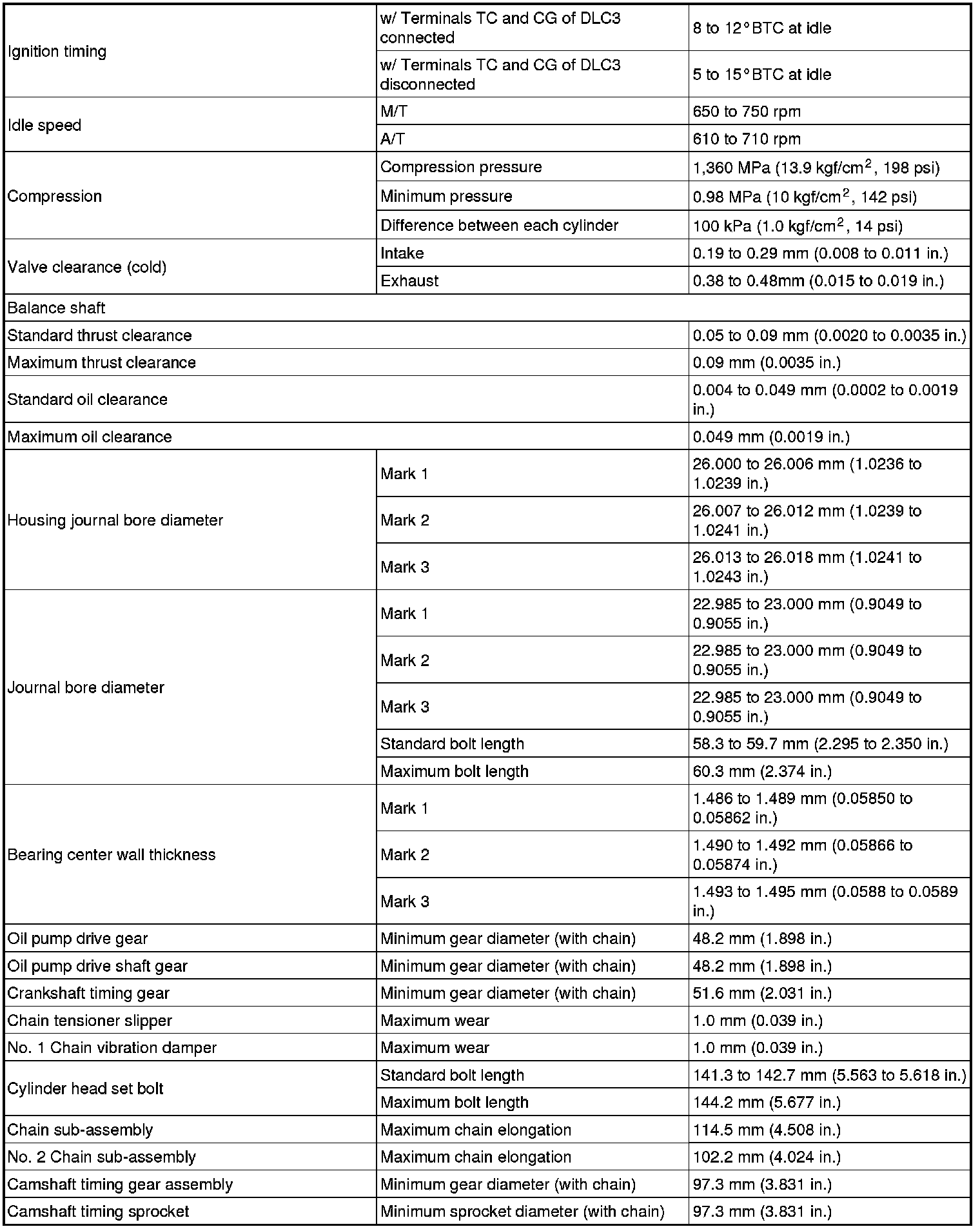 SERVICE SPECIFICATIONS: 2AZ-FE ENGINE MECHANICAL: