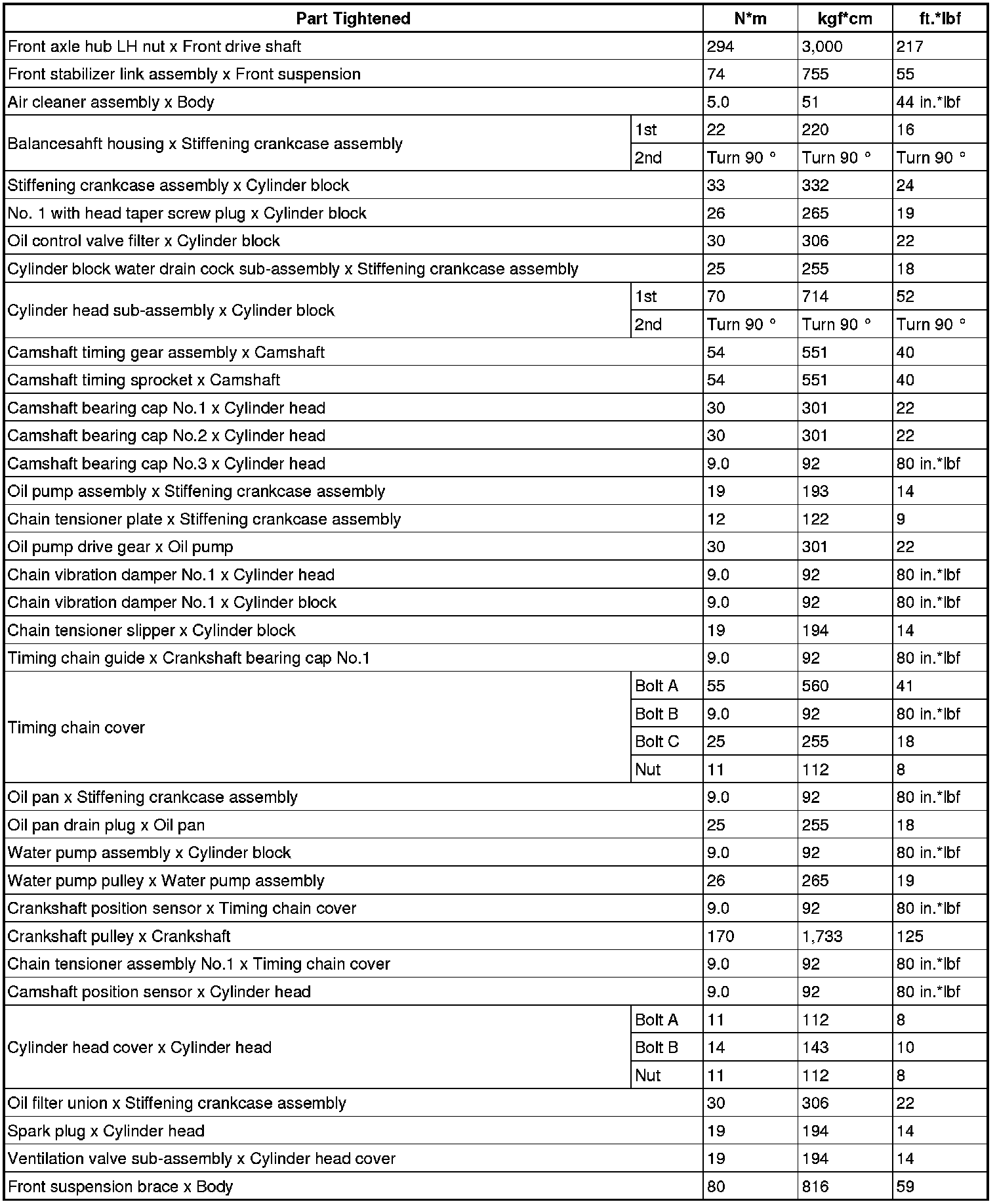 Torque Specifications