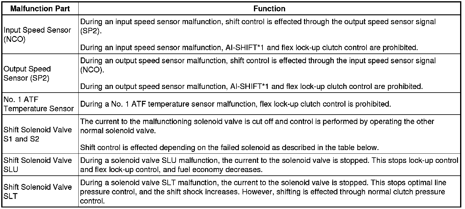 This function minimizes the loss of the ECT (Electronic Controlled automatic Transmission) functions when a malfunction occurs in a sensor or solenoid.