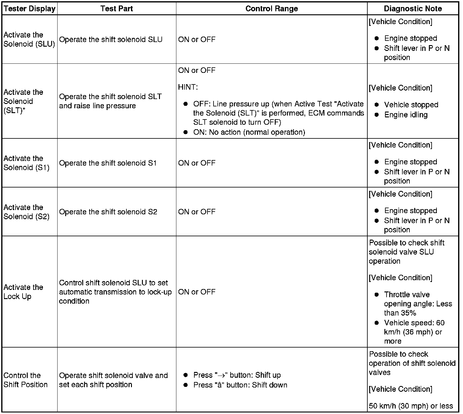 HINT: *: Activate the Solenoid (SLT) in the Active Test is performed to check the line pressure changes by connecting SST to the automatic transmission, which is used in the Hydraulic Test (Hydraulic Test) as well. The pressure values in the Active Test and Hydraulic Test are different from each other.