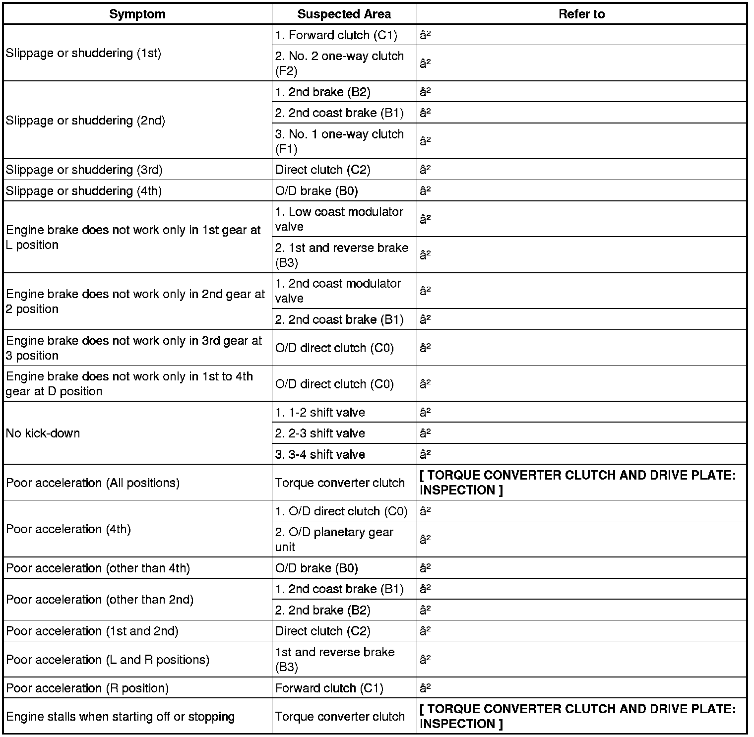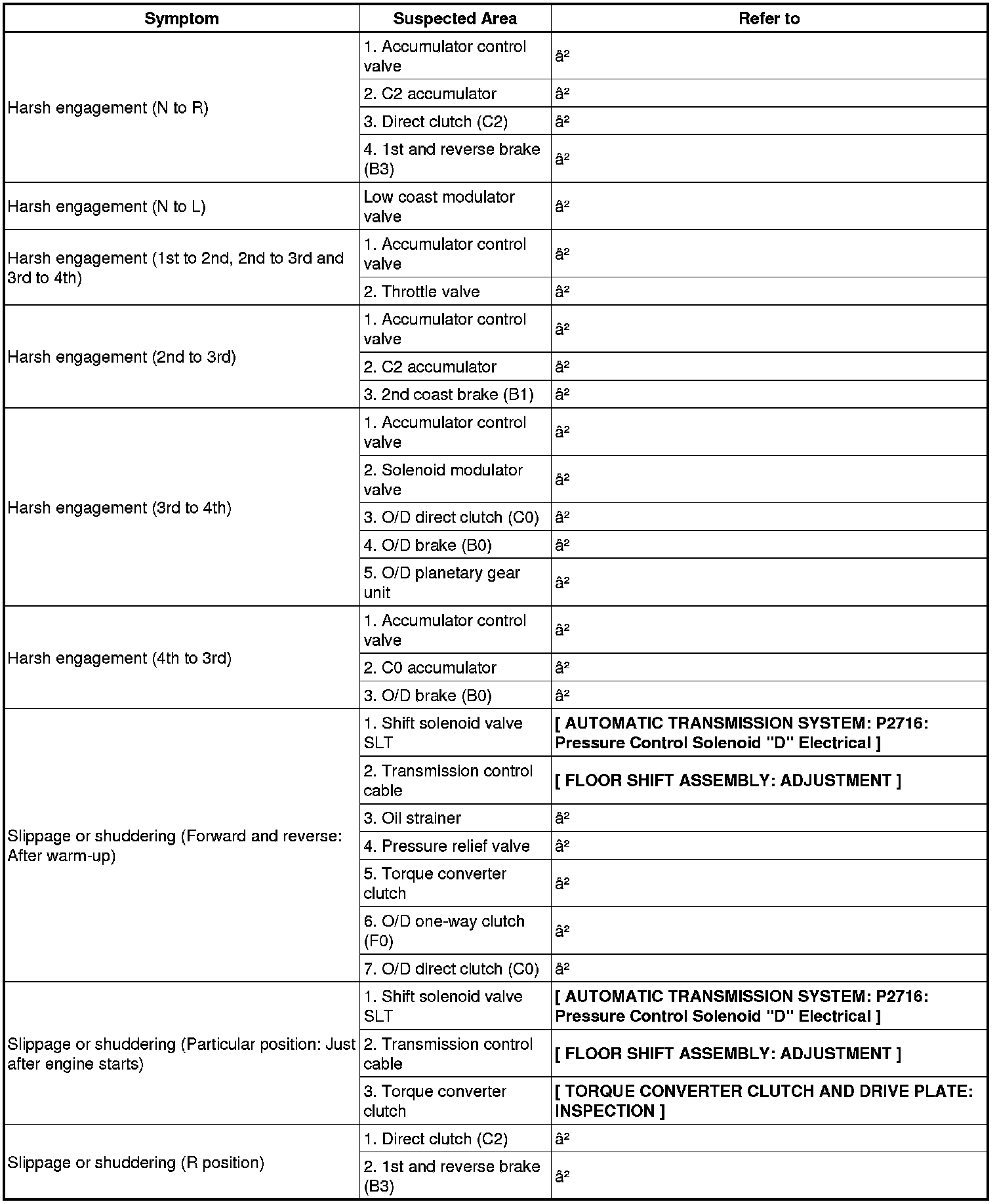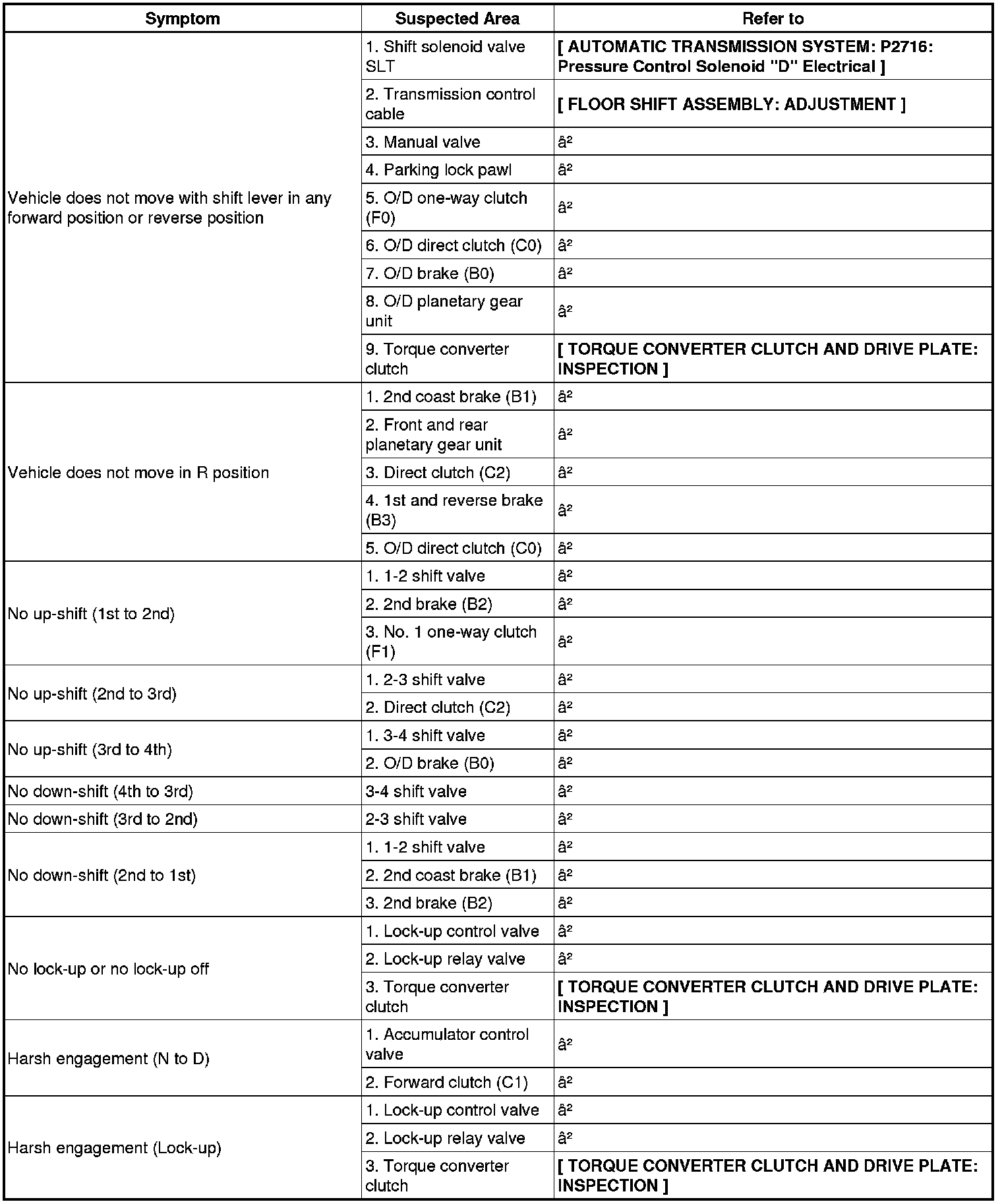 PROBLEM SYMPTOMS TABLE