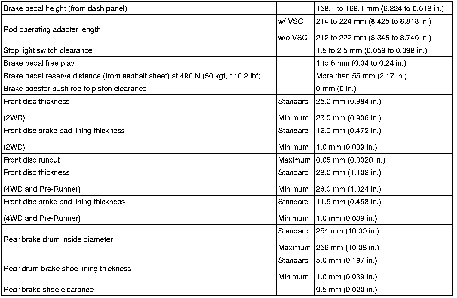 SERVICE SPECIFICATIONS: BRAKE: SERVICE DATA