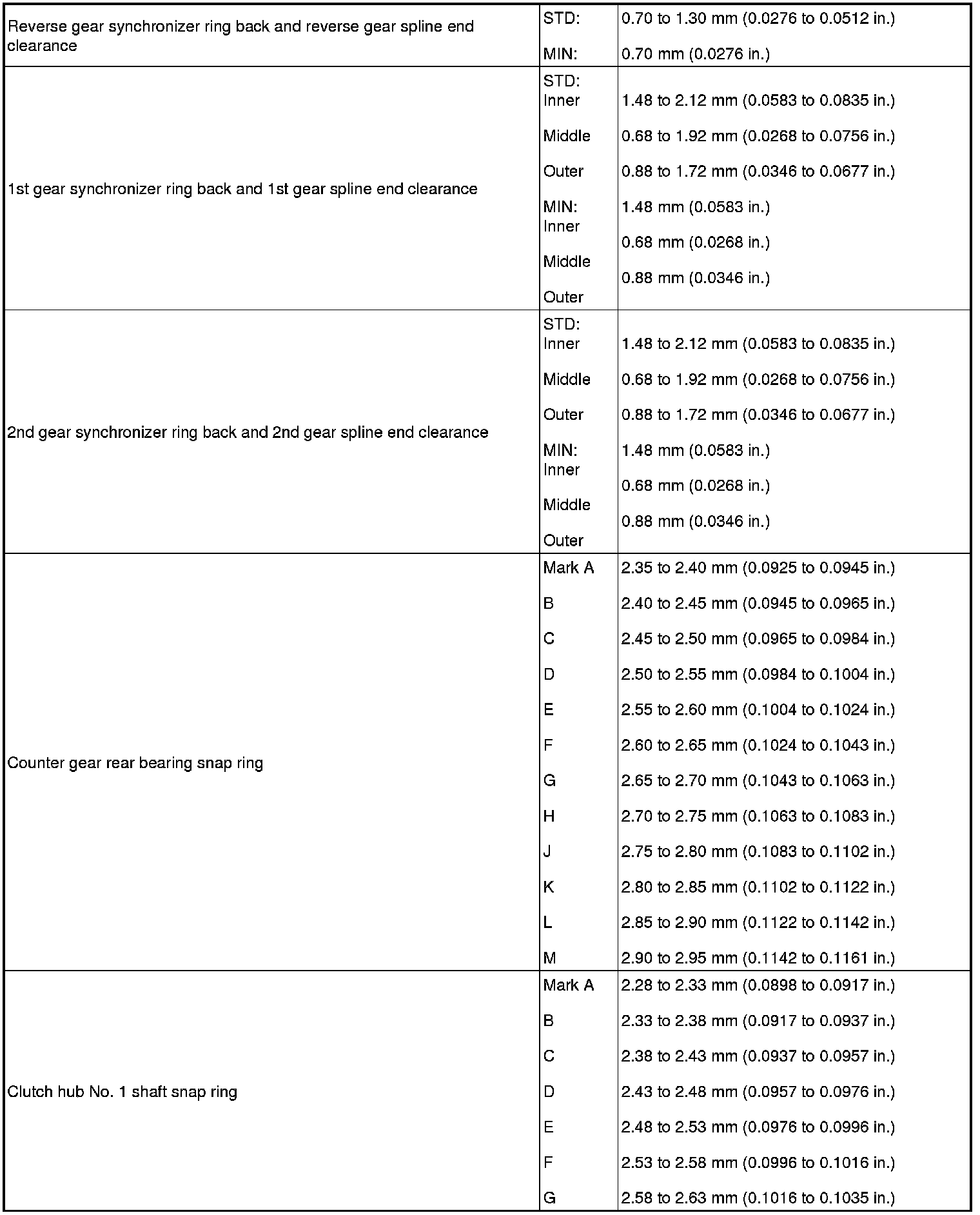 SERVICE SPECIFICATIONS: RA60 MANUAL TRANSMISSION: SERVICE DATA