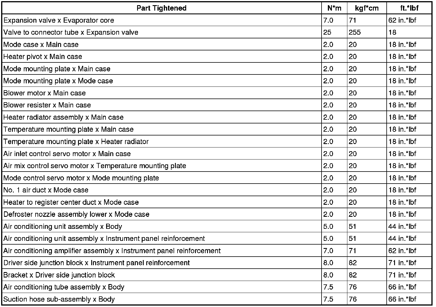 SERVICE SPECIFICATIONS: AIR CONDITIONING: TORQUE SPECIFICATIONS