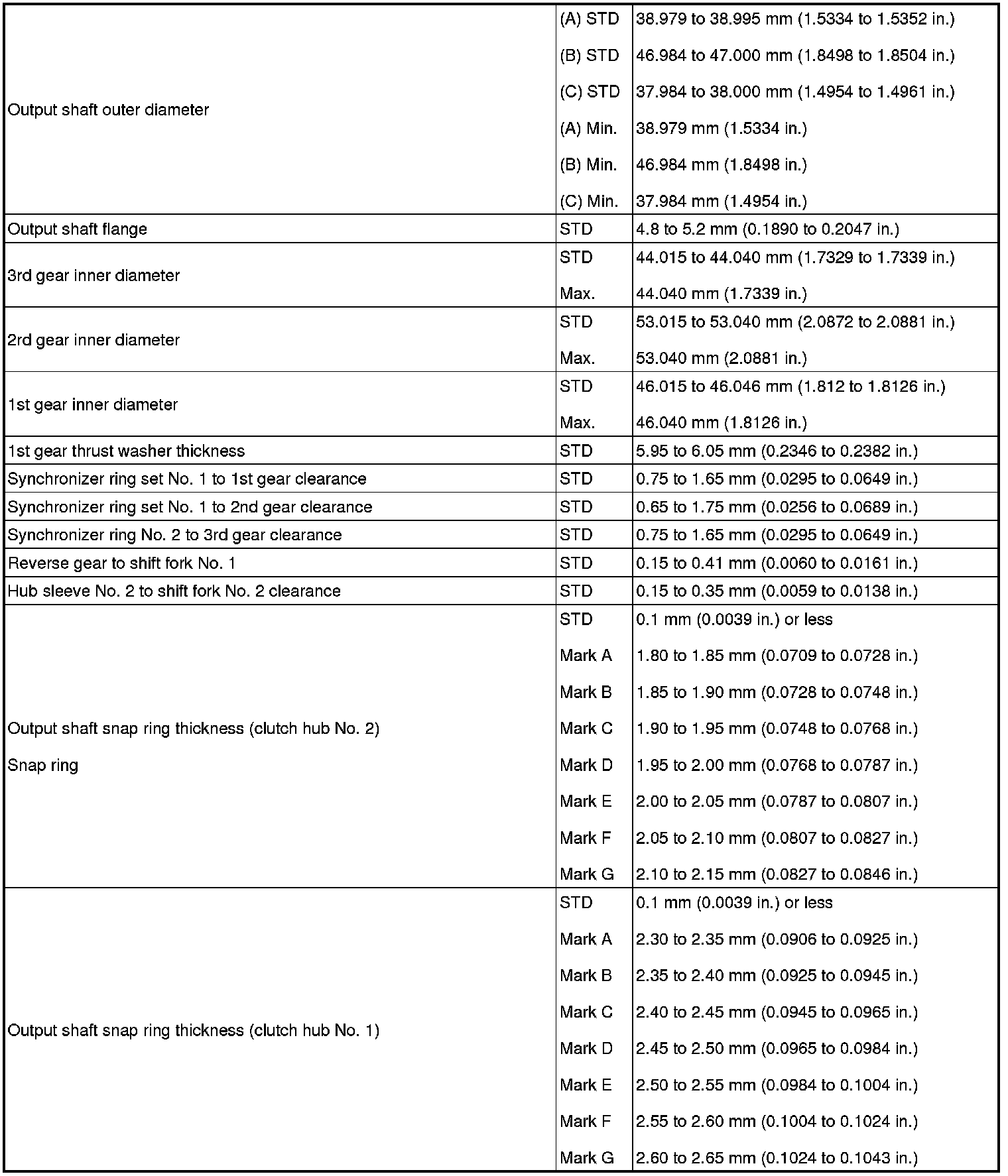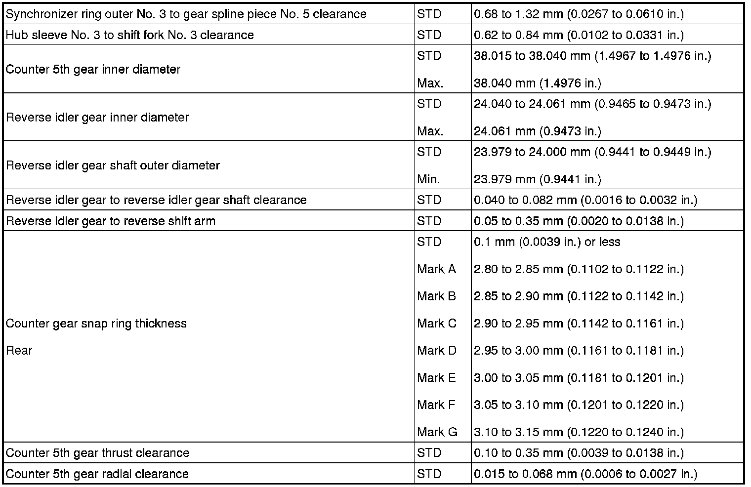 SERVICE SPECIFICATIONS: R155F MANUAL TRANSMISSION: SERVICE DATA