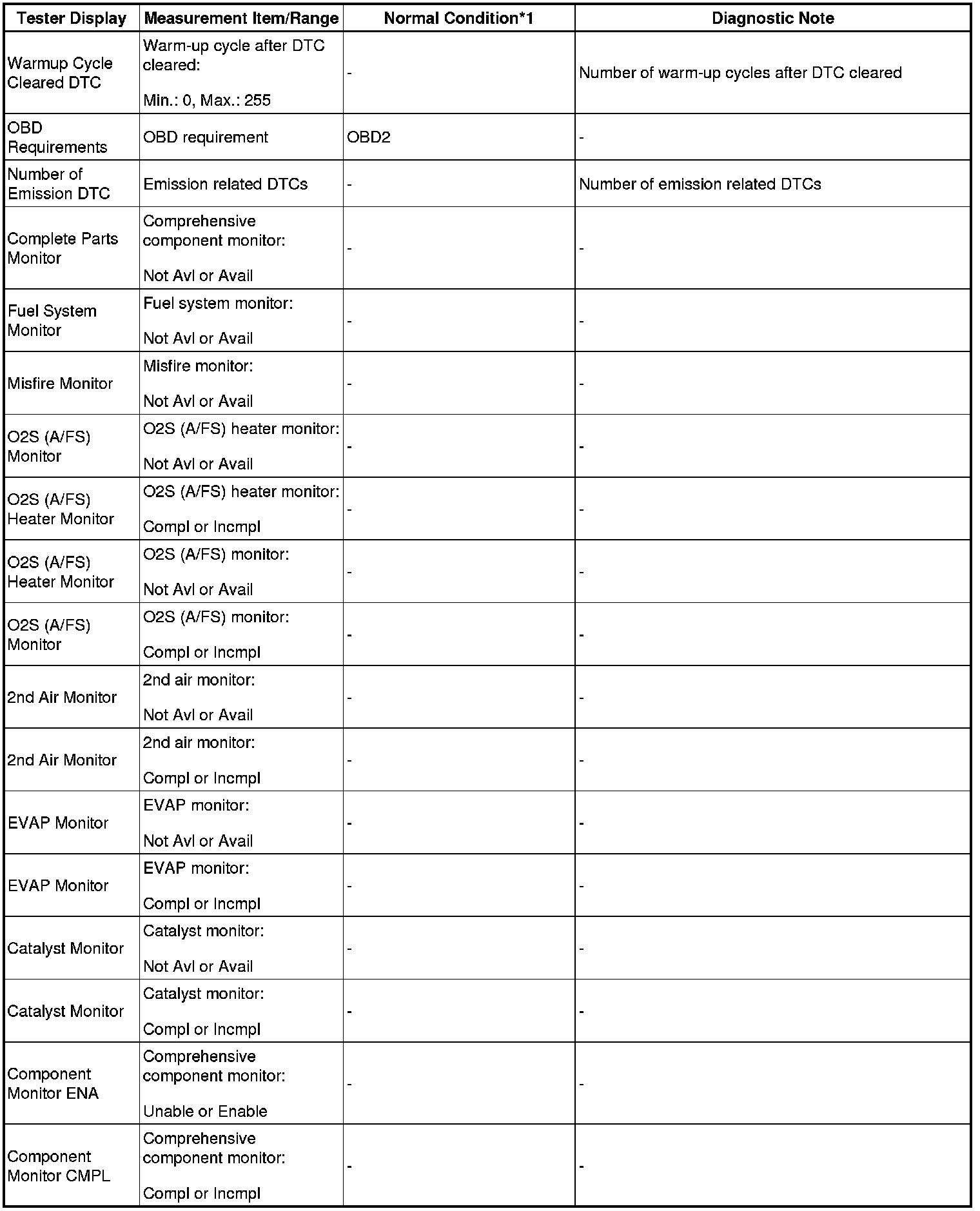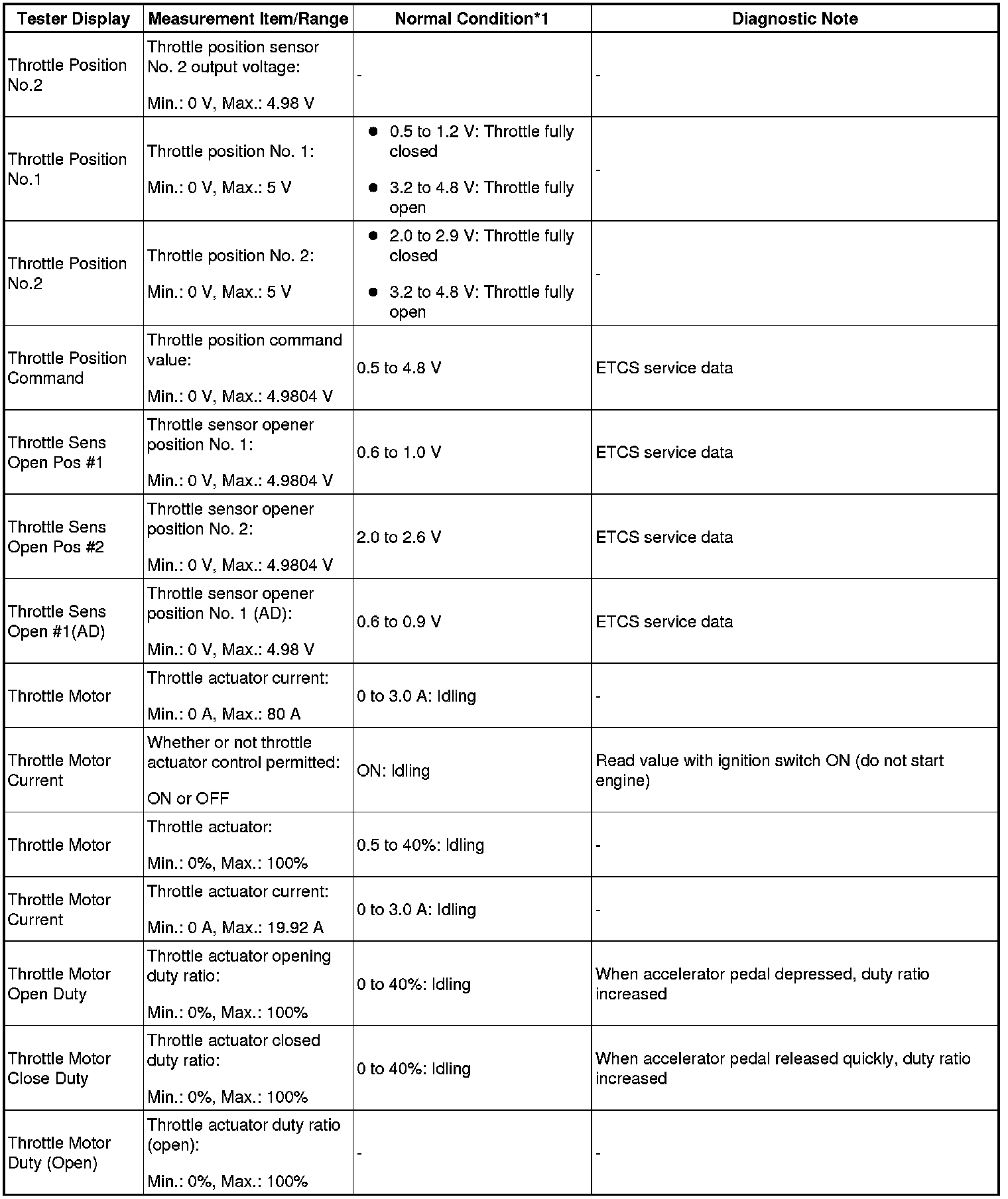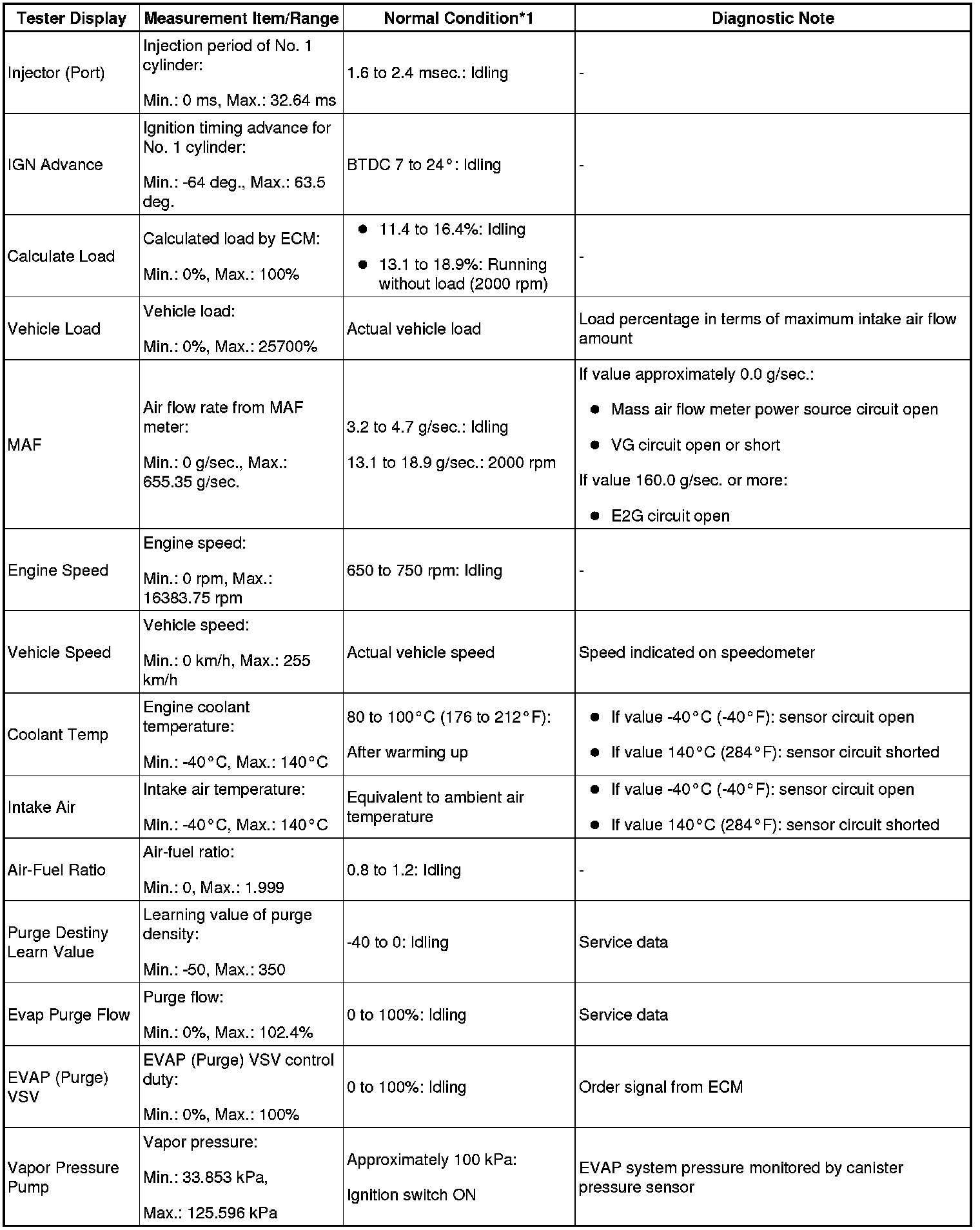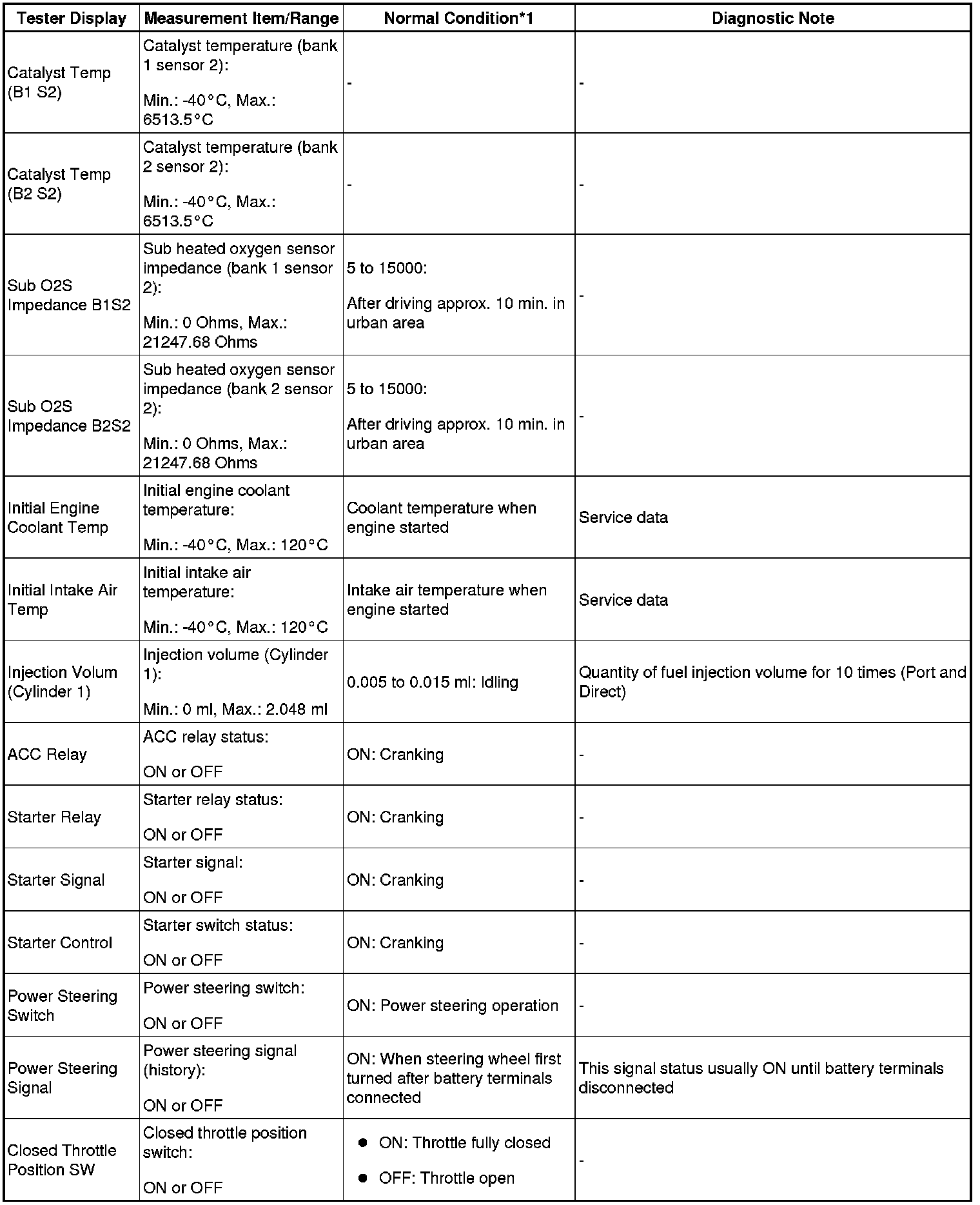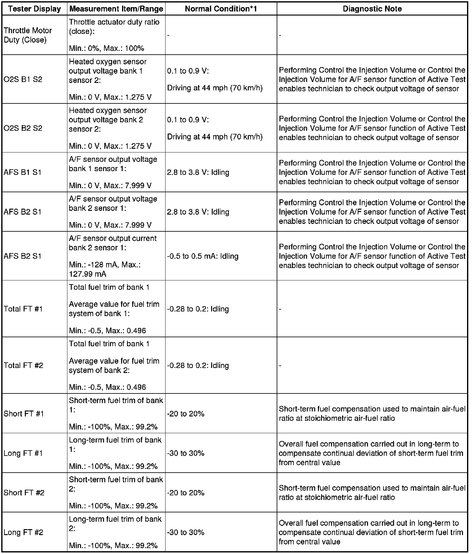 - *1: If no idling conditions are specified, the shift lever should be in the N or P position, and the A/C switch and all accessory switches should be OFF.