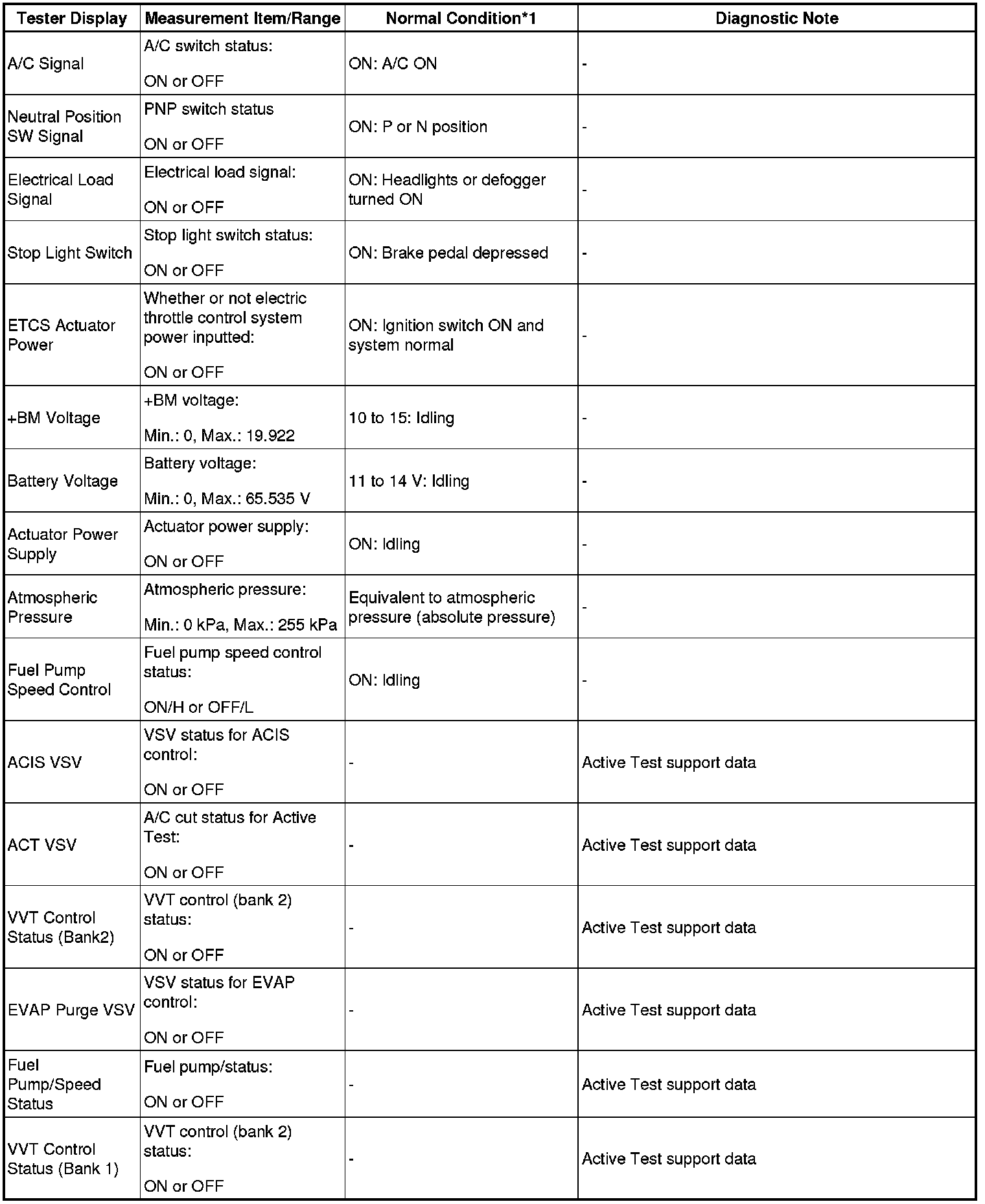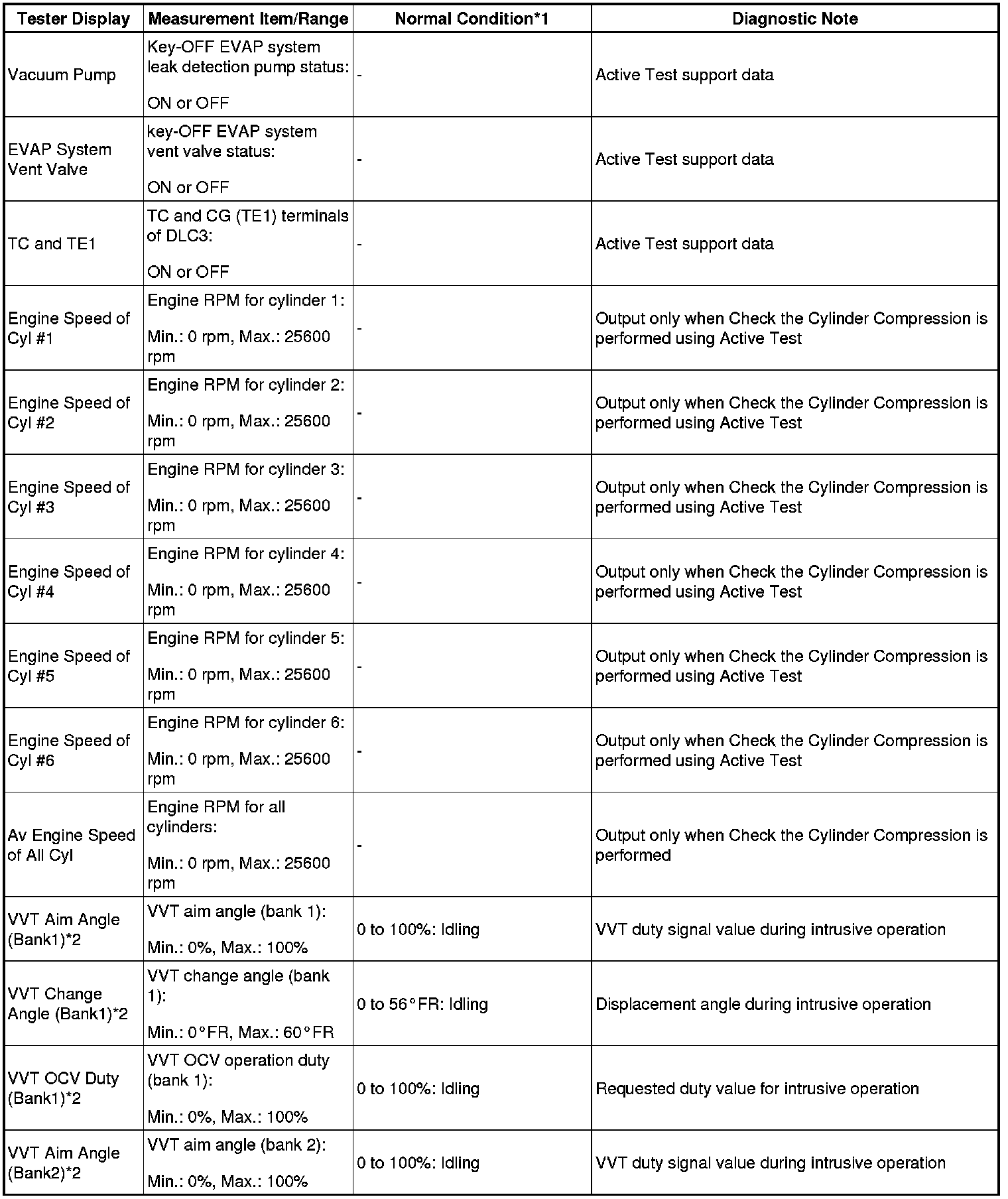- *2: Data List values are only displayed when performing the following Active Test: Control the VVT Linear (Bank 1), Control the VVT Linear (Bank 2), Control the VVT Exhaust Linear (Bank 1) and Control the VVT Exhaust Linear (Bank 2). For other Active Tests, the Data List value will be 0.