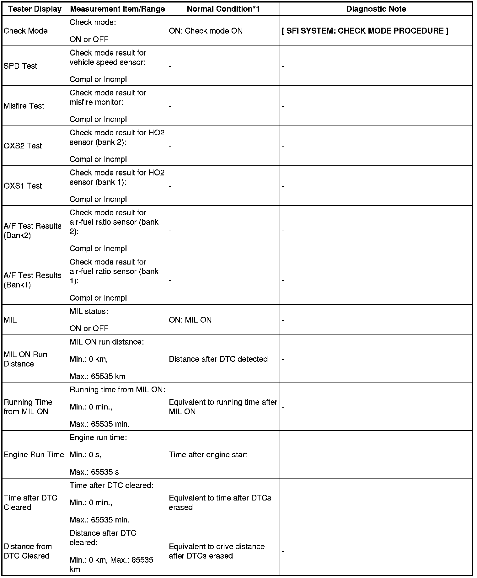 (e) Perform the System Check by referring to the table below