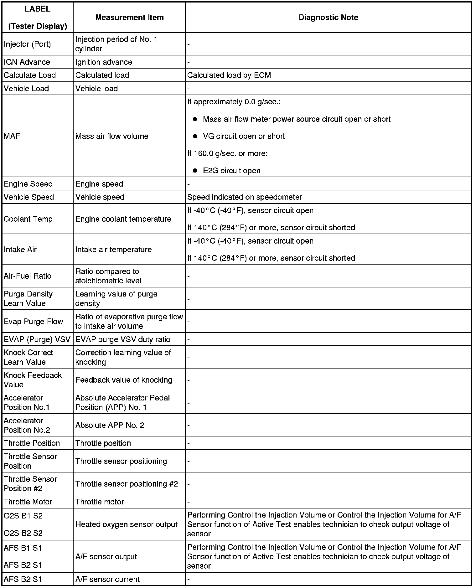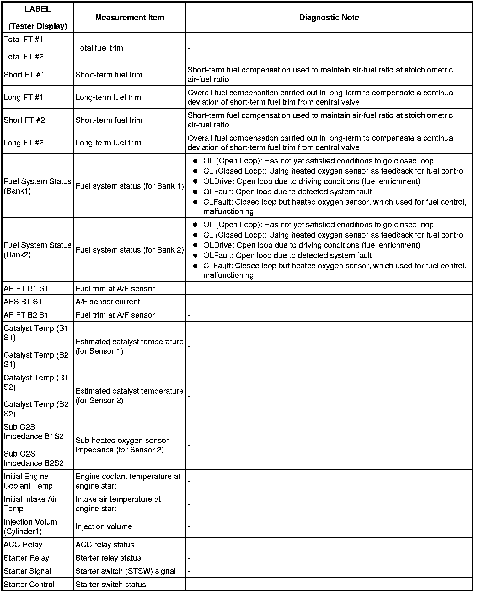 1GR-FE ENGINE CONTROL SYSTEM: SFI SYSTEM: FREEZE FRAME DATA