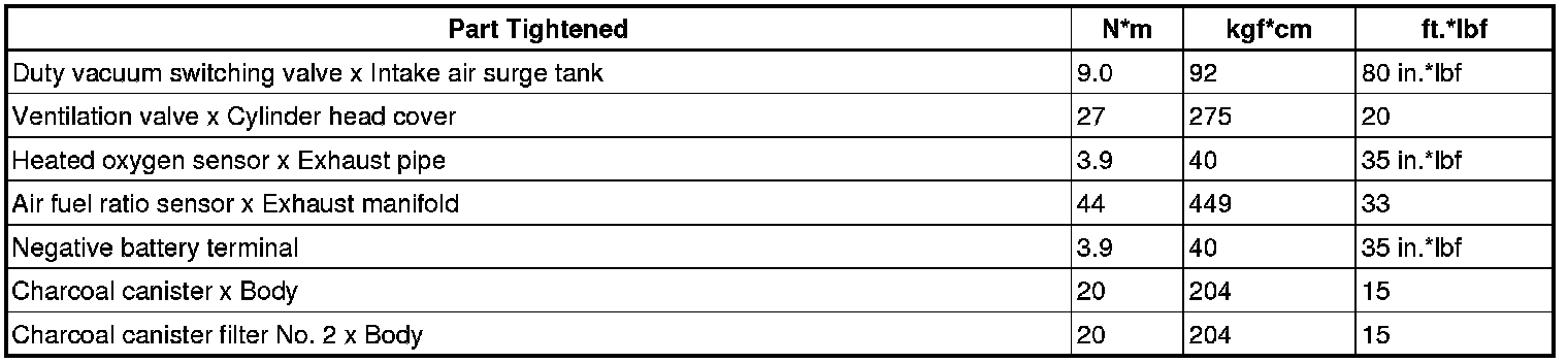 SERVICE SPECIFICATIONS: 1GR-FE EMISSION CONTROL: TORQUE SPECIFICATIONS