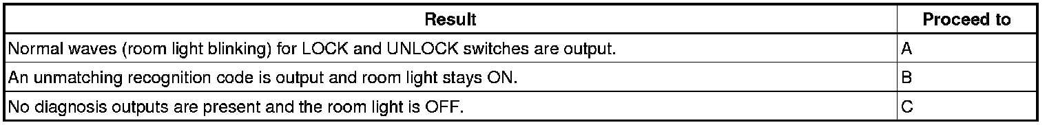 (a) Inspect the diagnosis outputs when the door control transmitter switch is held down. The diagnosis outputs can be checked with the outputs of the room light.