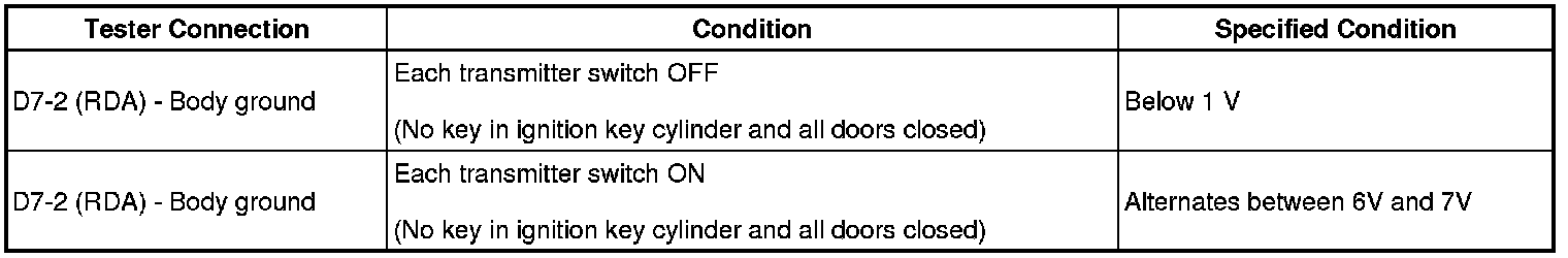 (a) Prepare a new or correctly functioning door control transmitter switch for the same vehicle model. Press and hold a switch on the transmitter and check that an unmatching recognition code is output.