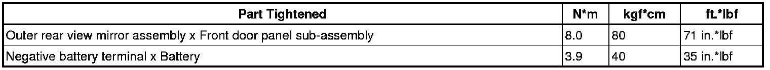 SERVICE SPECIFICATIONS: MIRROR: TORQUE SPECIFICATIONS