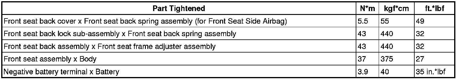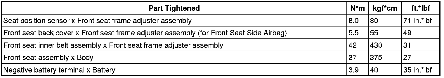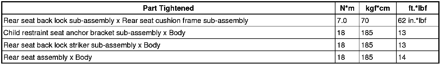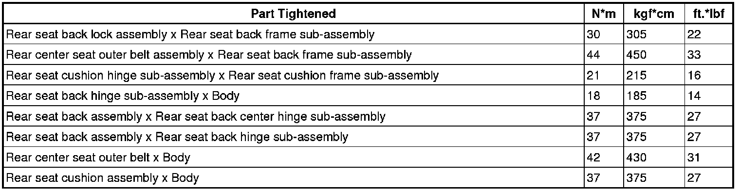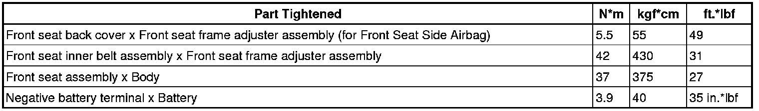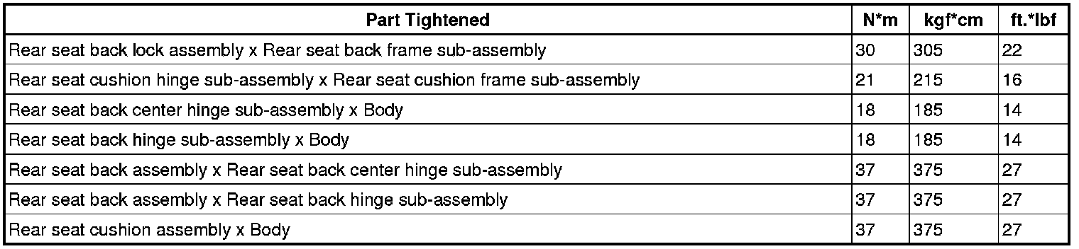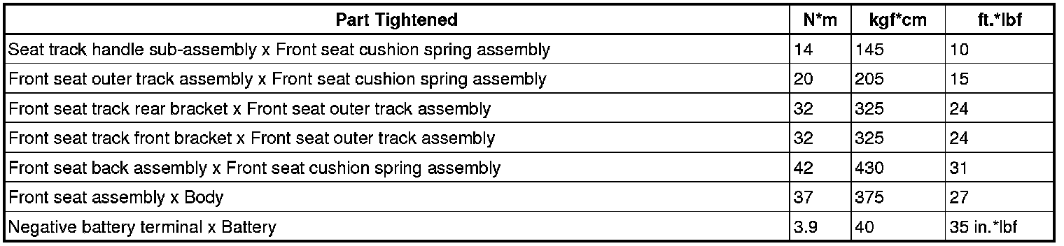 SERVICE SPECIFICATIONS: SEAT: TORQUE SPECIFICATIONS