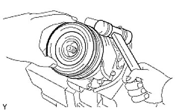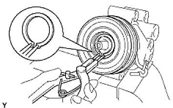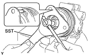 (c) Using SST, remove the snap ring and magnet clutch rotor.