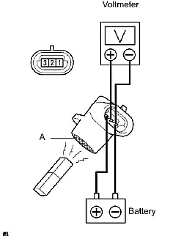 (1) Connect the positive (+) lead from the battery to terminal 3 (SSR-) and the negative (-) lead to terminal 1 (MG+), and measure the voltage between terminals 1 (MG+) and 2 (SSR+).