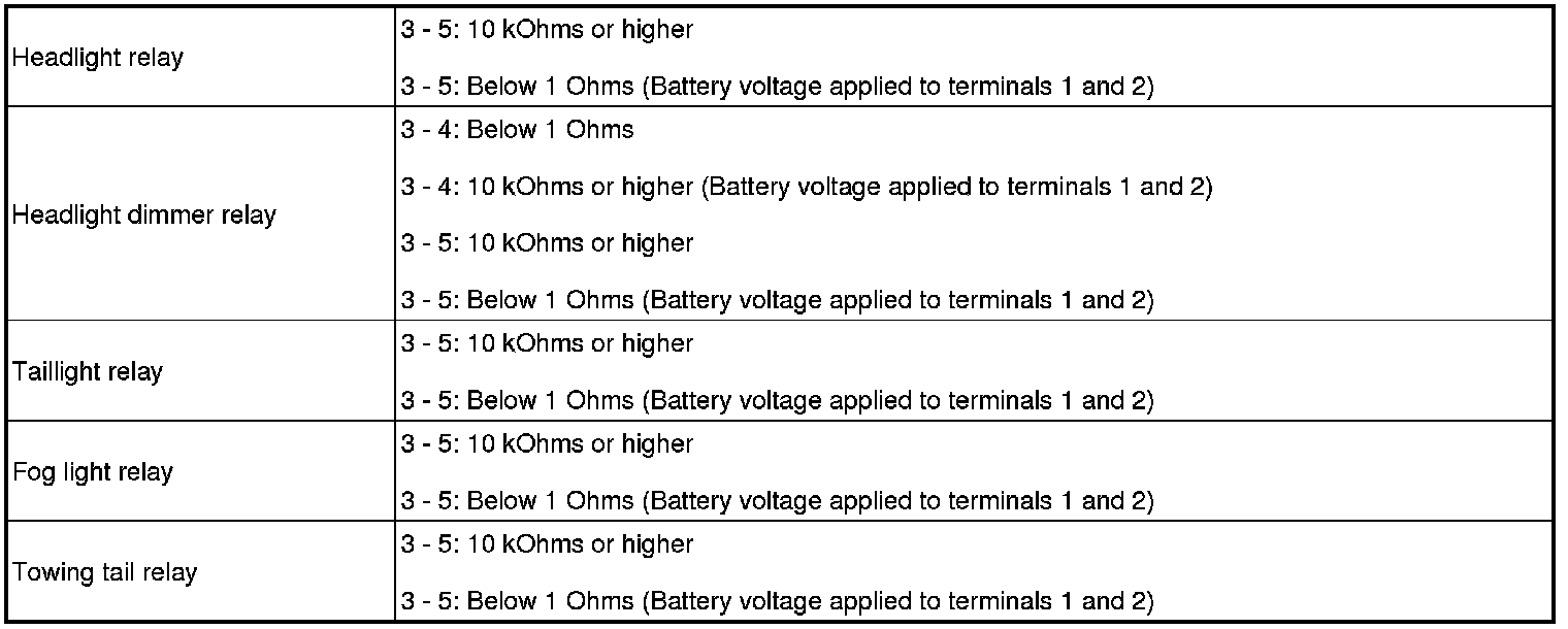SERVICE SPECIFICATIONS: LIGHTING: SERVICE DATA