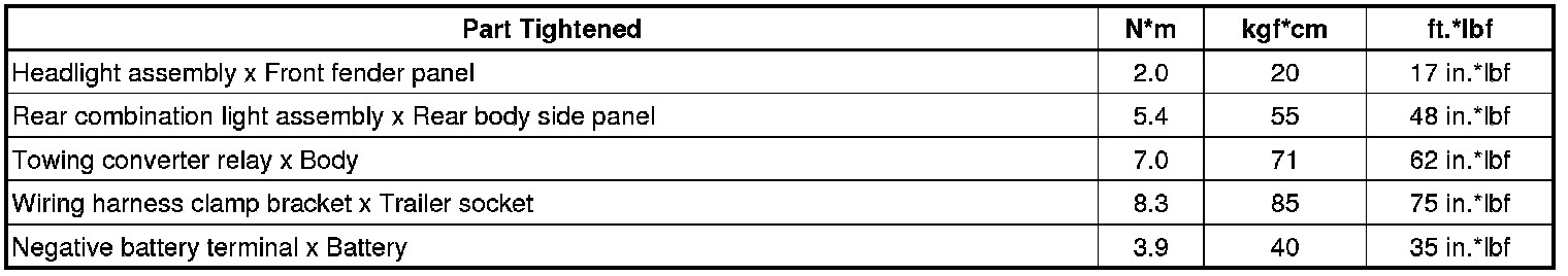 SERVICE SPECIFICATIONS: LIGHTING: TORQUE SPECIFICATIONS