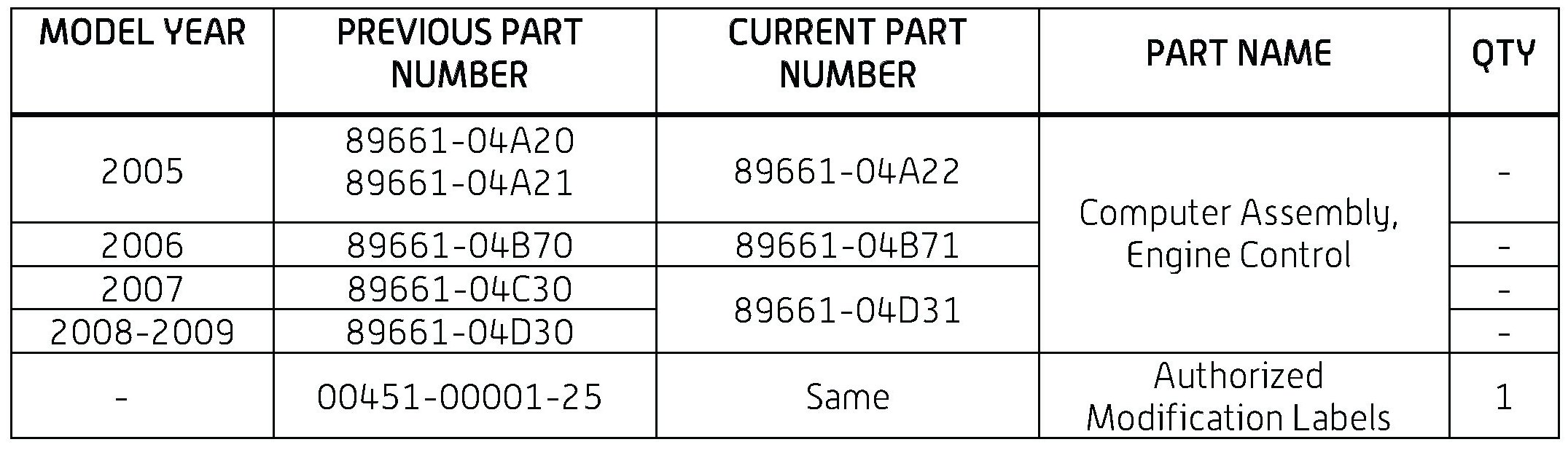 - ECM part number [Refer to the Parts Information section for the CURRENT PART NUMBER]