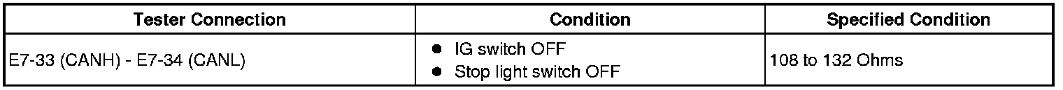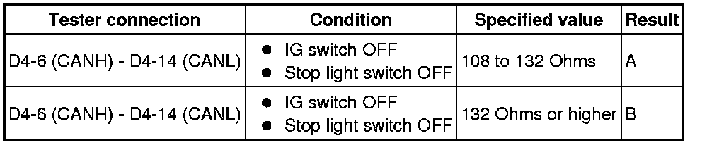 NOTE: When the measured value is 132 Ohmsor more and a CAN communication system diagnostic code is output, there may be a fault other than a disconnection of the DLC3 sub bus line.