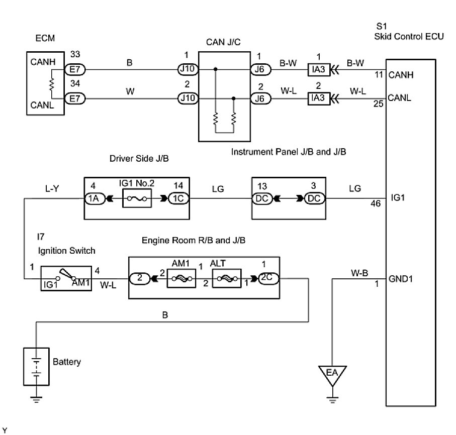 1. CHECK CAN BUS LINE FOR DISCONNECTION (SKID CONTROL ECU SUB BUS LINE)