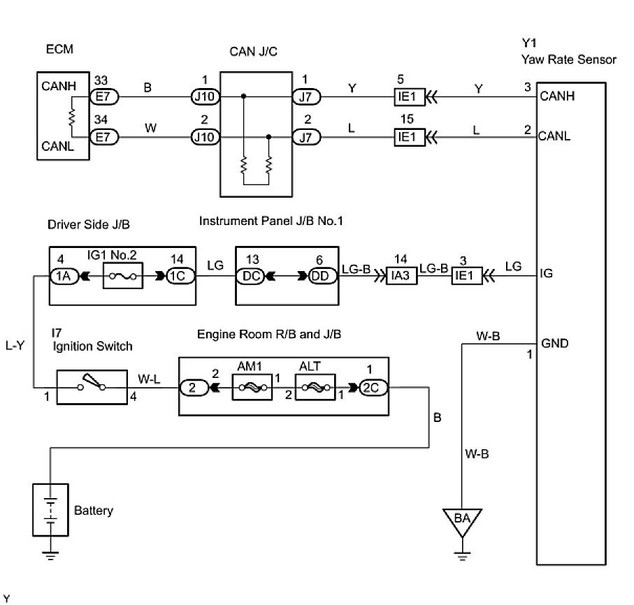 1. CHECK CAN BUS LINE FOR DISCONNECTION (YAW RATE SENSOR SUB BUS LINE)