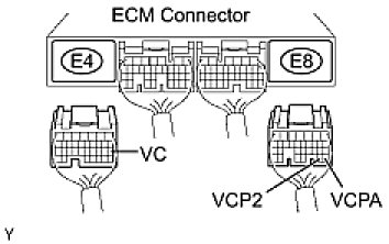 When the VC circuit is short-circuited, the microprocessor in the ECM and sensors that are supplied power through the VC circuit are inactivated because the power is not supplied from the VC circuit. Under this condition, the system does not start up and the MIL does not illuminate even if the system malfunctions.