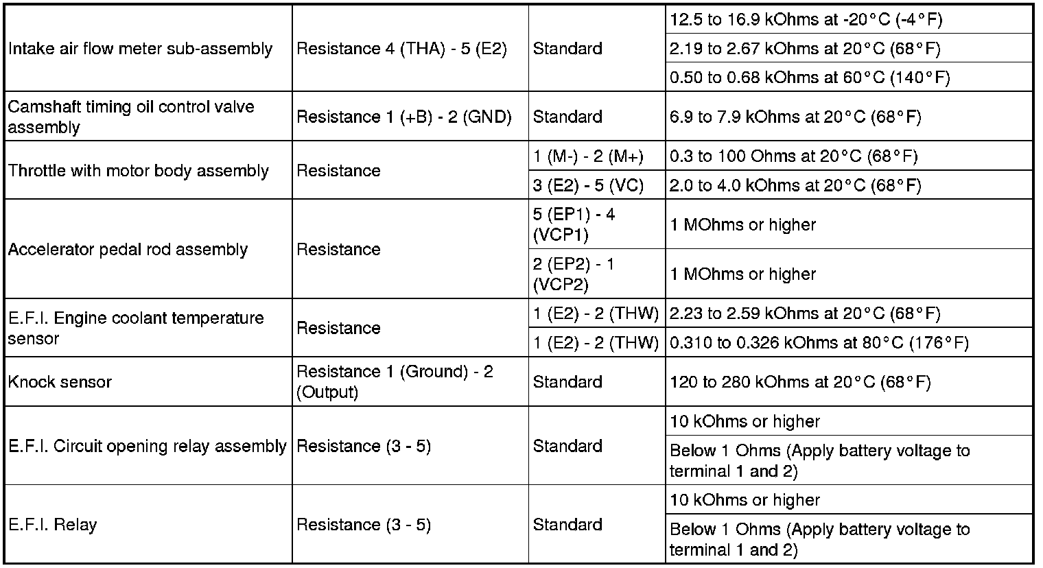 SERVICE SPECIFICATIONS: 2TR-FE ENGINE CONTROL SYSTEM: SERVICE DATA