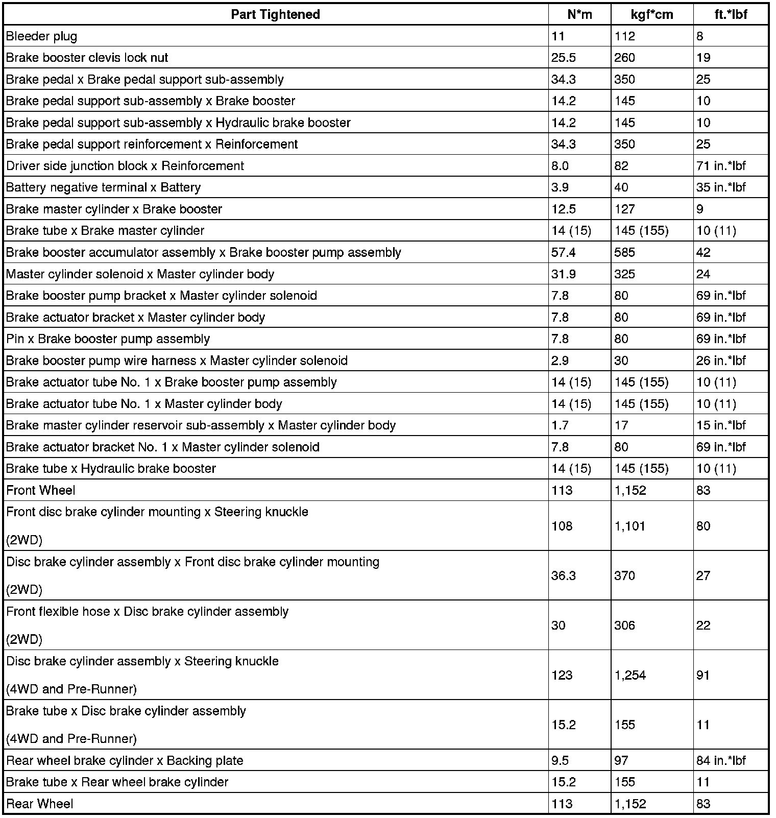 SERVICE SPECIFICATIONS: BRAKE: TORQUE SPECIFICATIONS