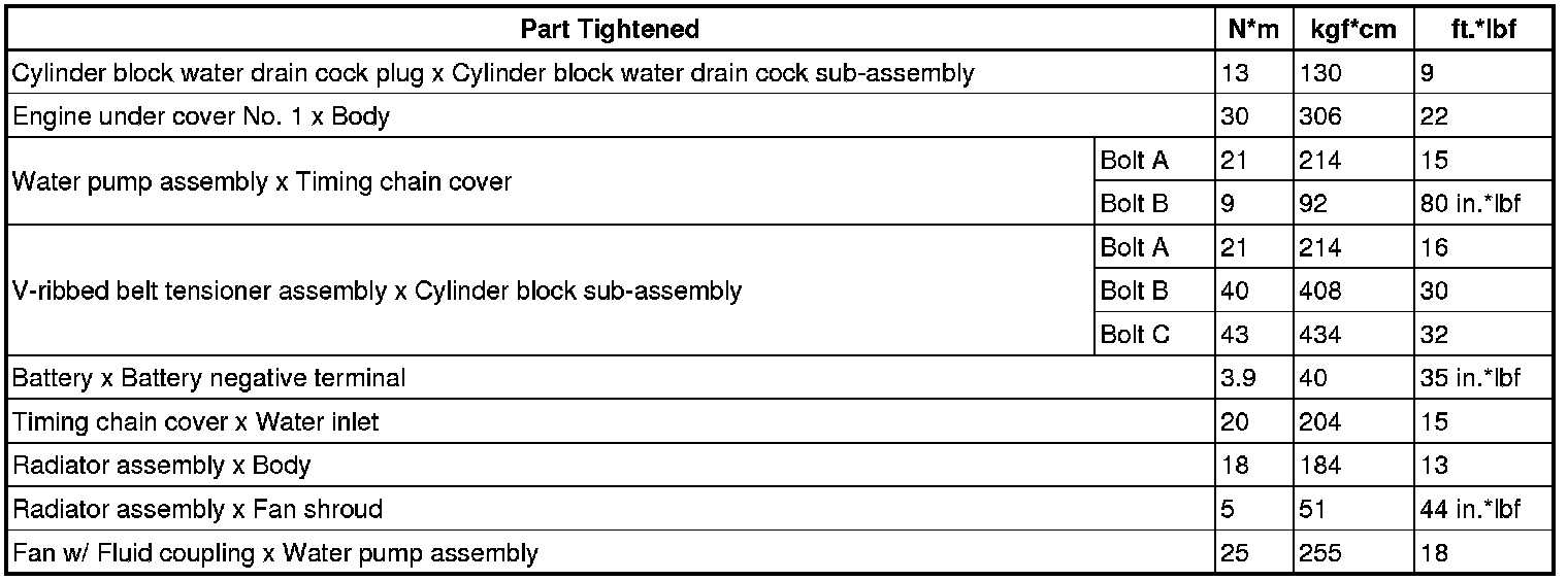 SERVICE SPECIFICATIONS: 2TR-FE COOLING: TORQUE SPECIFICATIONS
