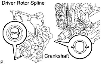 OIL PUMP- Align the oil pump's drive rotor spline and the crankshaft as shown in the illustration. Install the spline and chain cover onto the crankshaft.