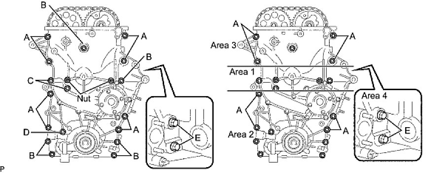- Fully tighten the bolts A in the following order: Area 2 and then Area 3.
