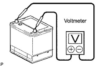 (4) Using a voltmeter, measure the battery voltage between the negative (-) and positive (+) terminals of the battery.